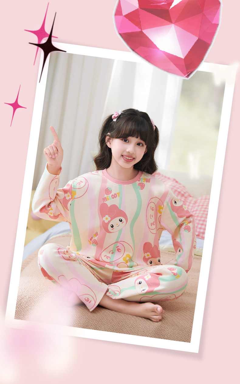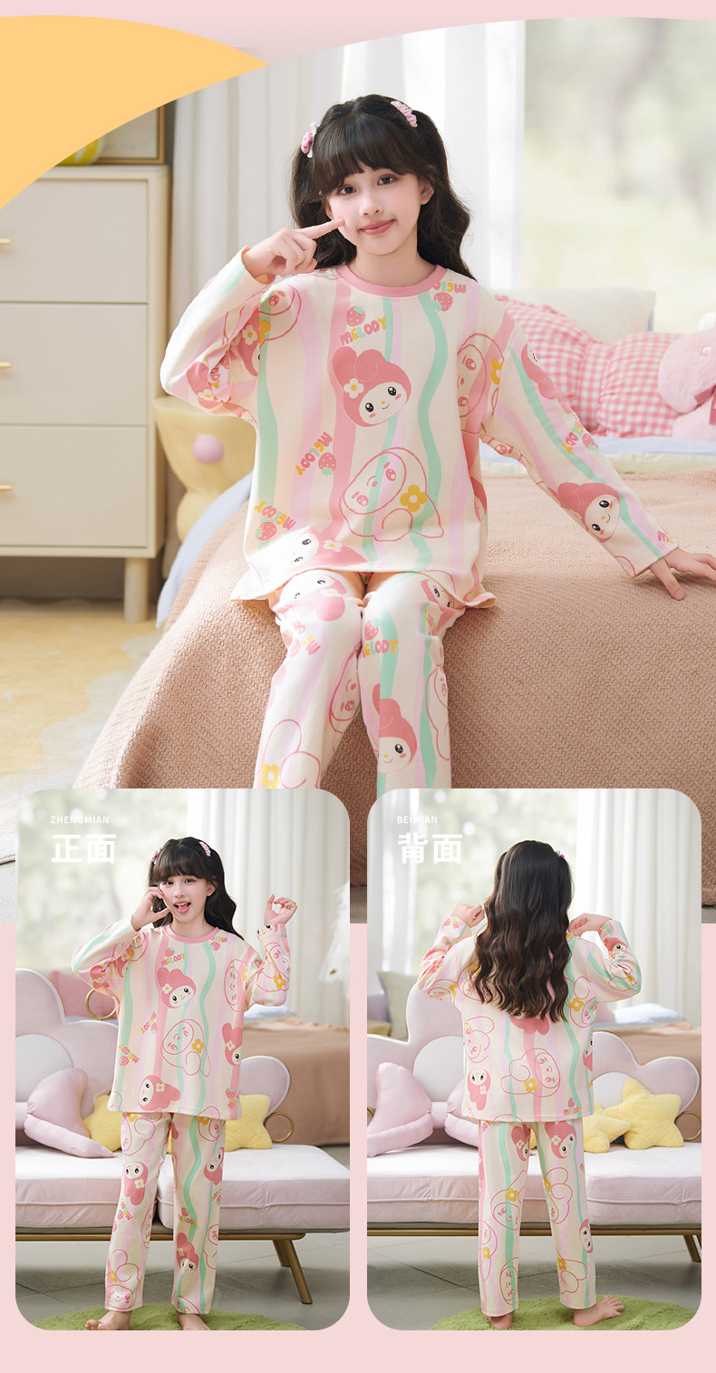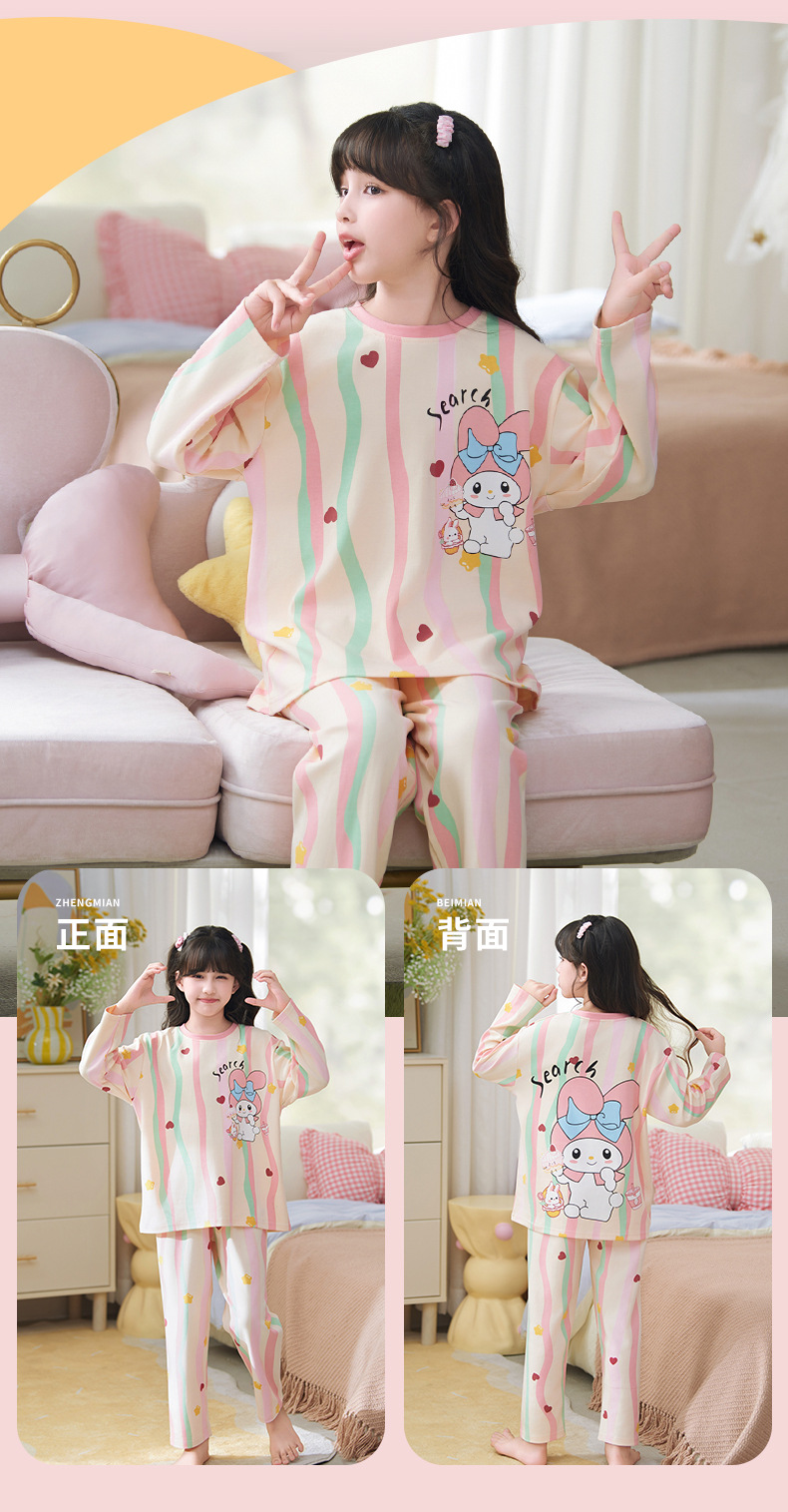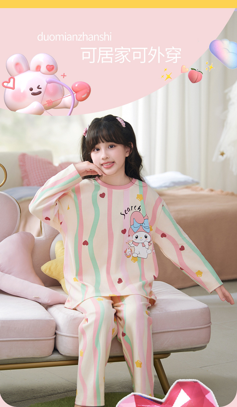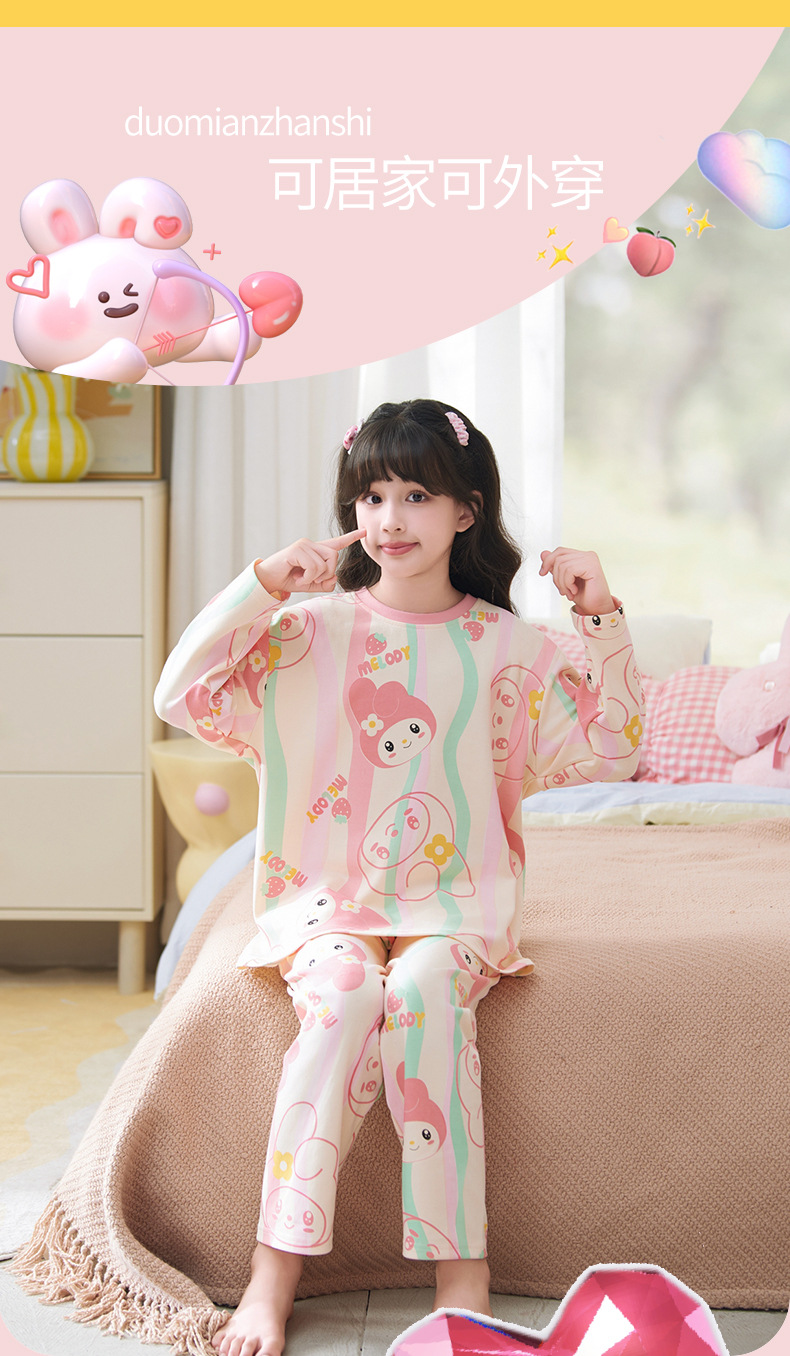 소녀 잠옷 2024 년 봄과 가을 새로운 순면 긴 소매 세트 소녀 큰 어린이 쿨리 학생 홈 옷스토어 가기