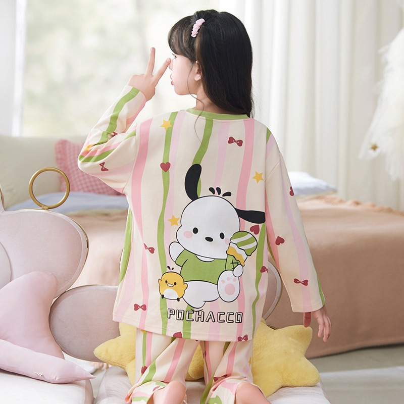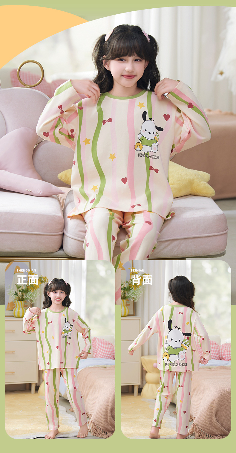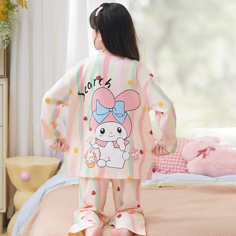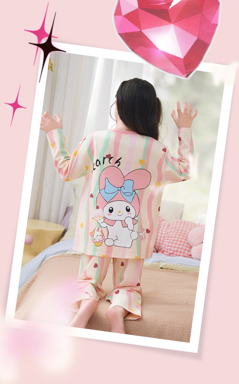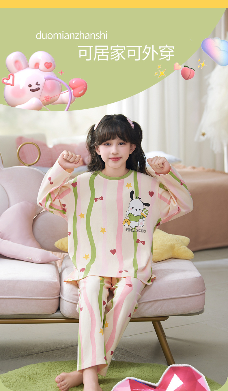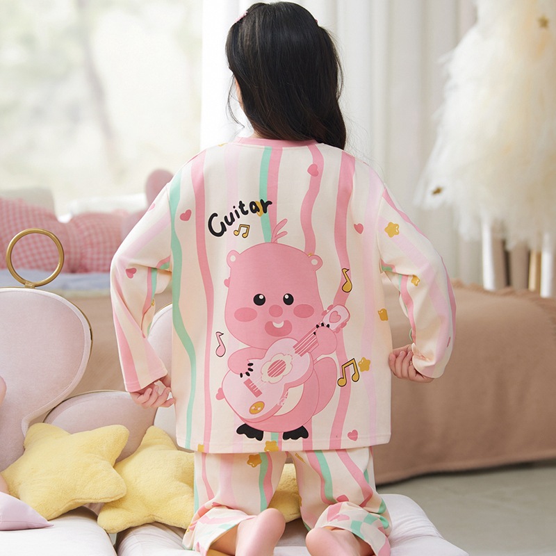 소녀 잠옷 2024 년 봄과 가을 새로운 순면 긴 소매 세트 소녀 큰 어린이 쿨리 학생 홈 옷스토어 가기