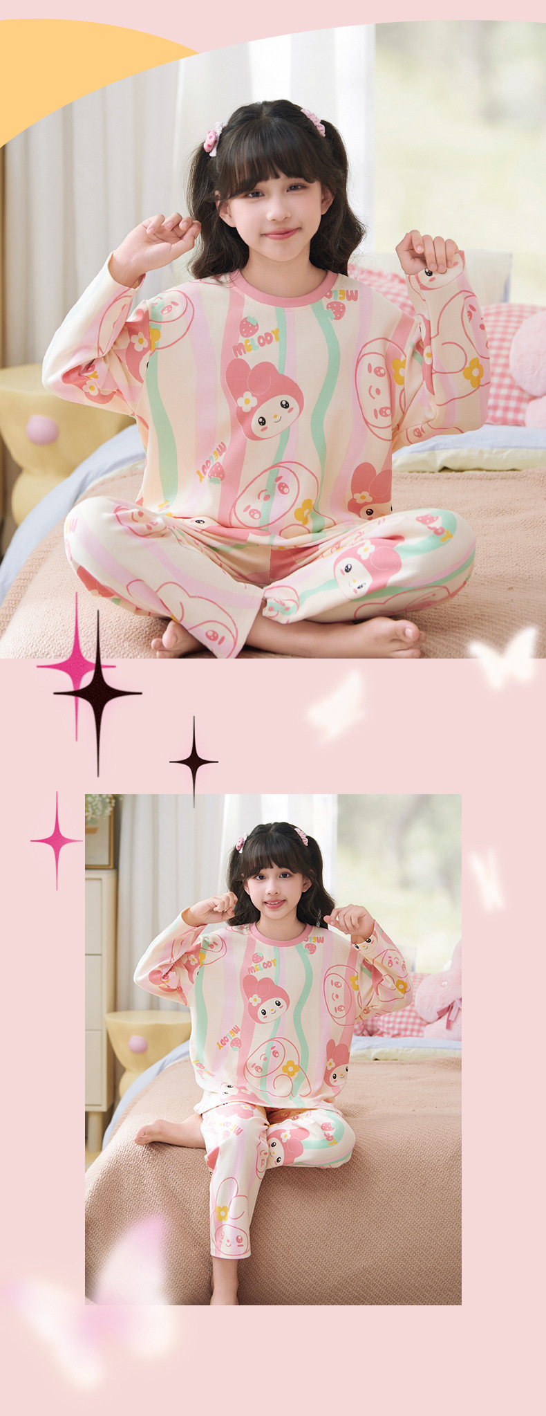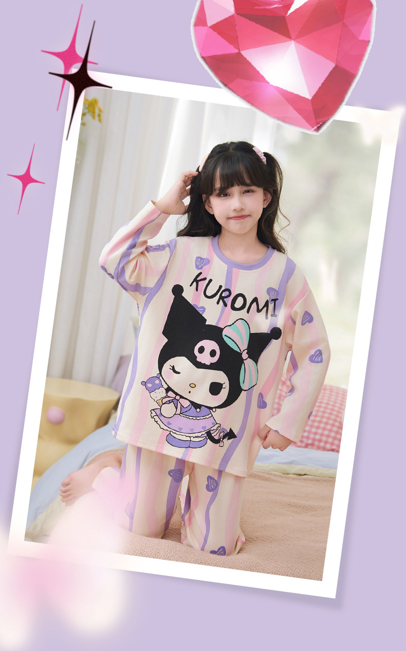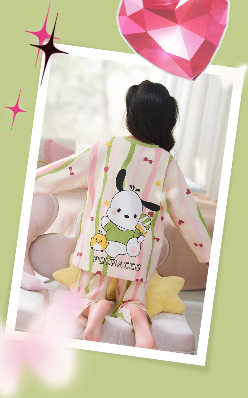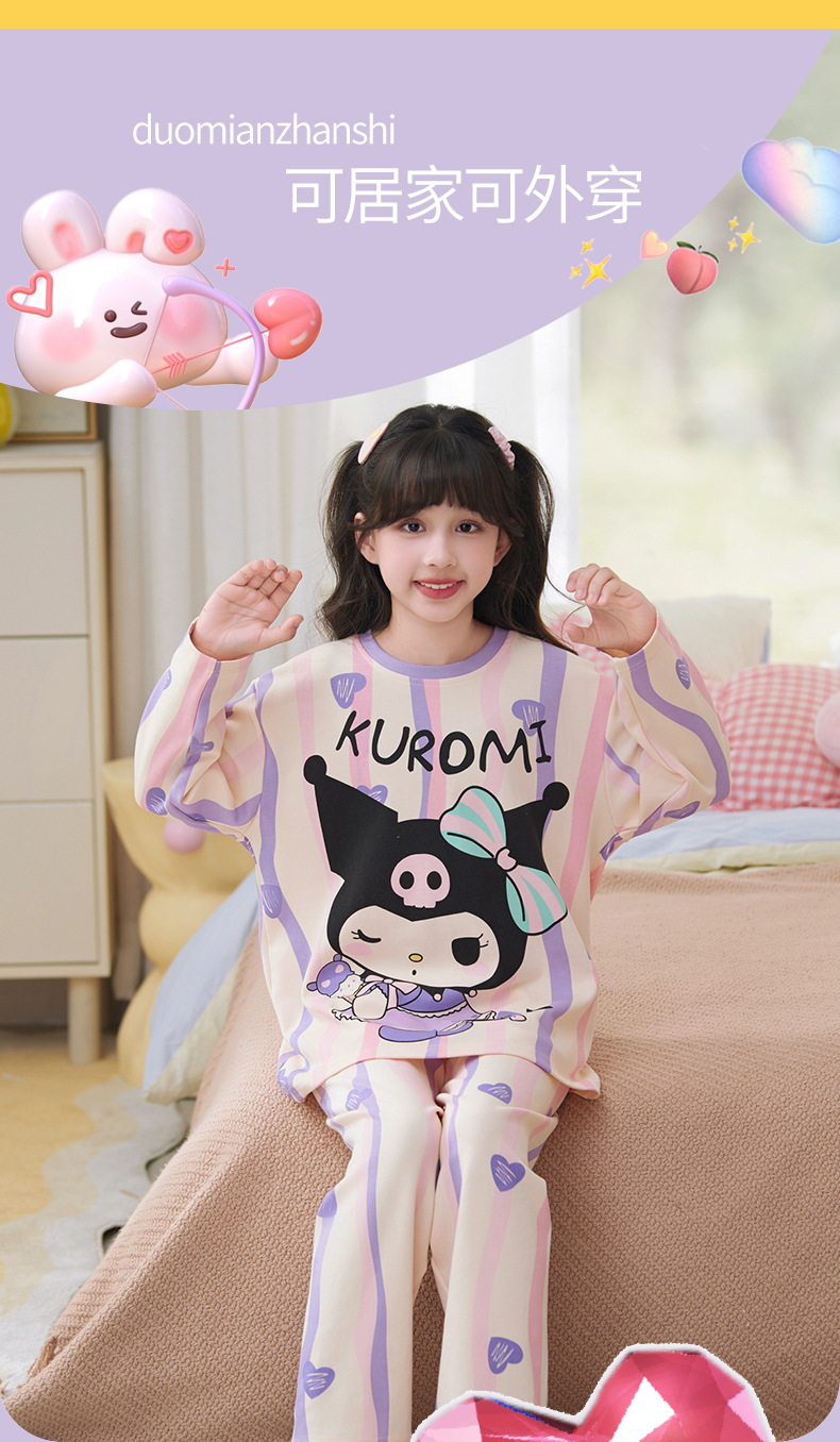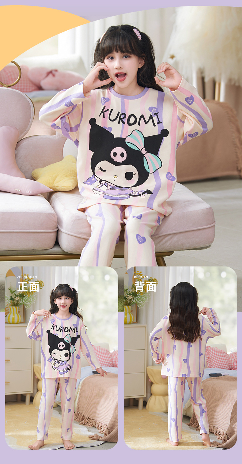 소녀 잠옷 2024 년 봄과 가을 새로운 순면 긴 소매 세트 소녀 큰 어린이 쿨리 학생 홈 옷스토어 가기