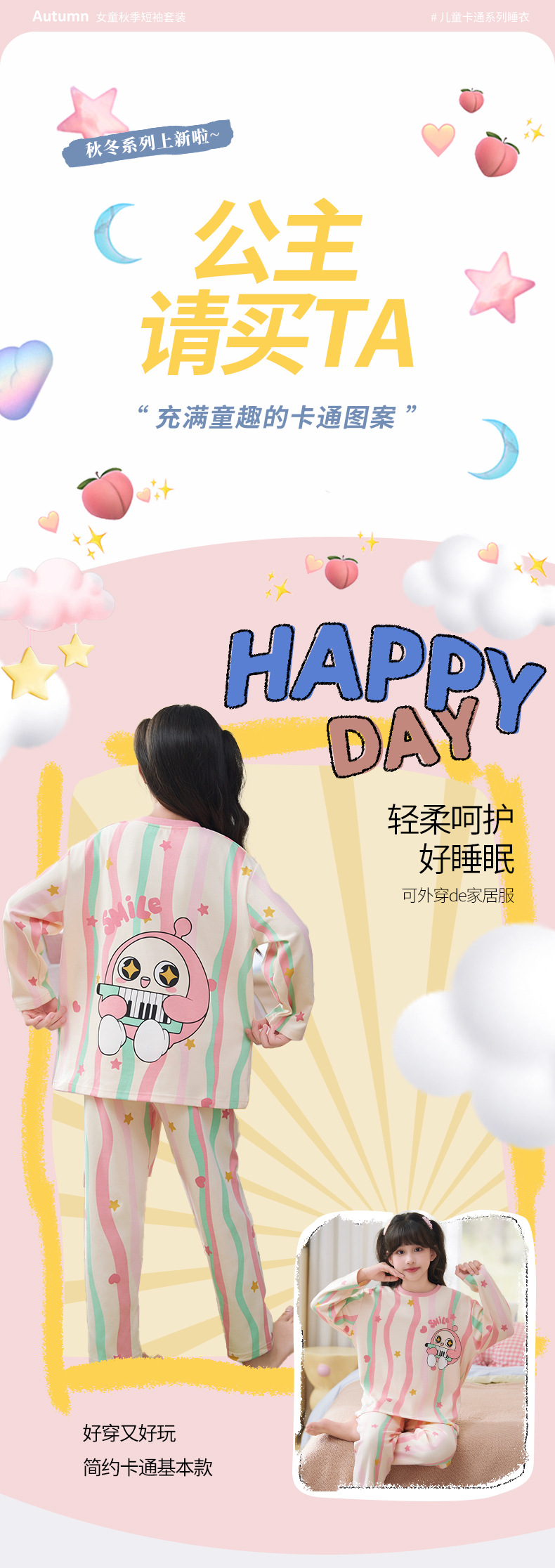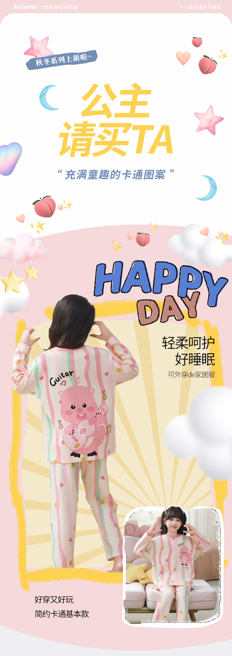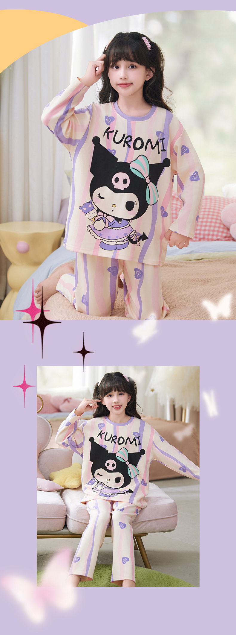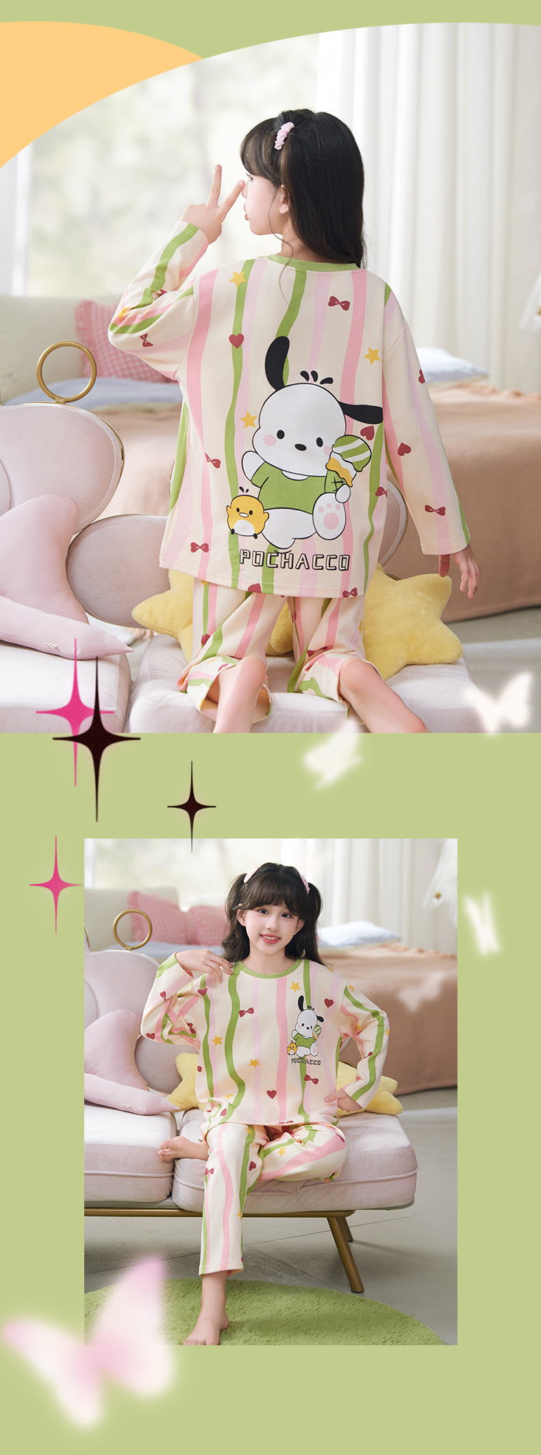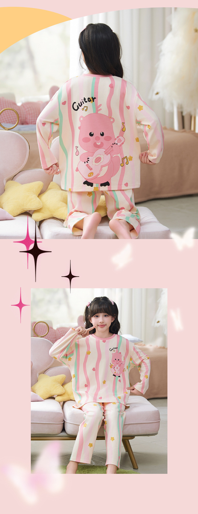 소녀 잠옷 2024 년 봄과 가을 새로운 순면 긴 소매 세트 소녀 큰 어린이 쿨리 학생 홈 옷스토어 가기