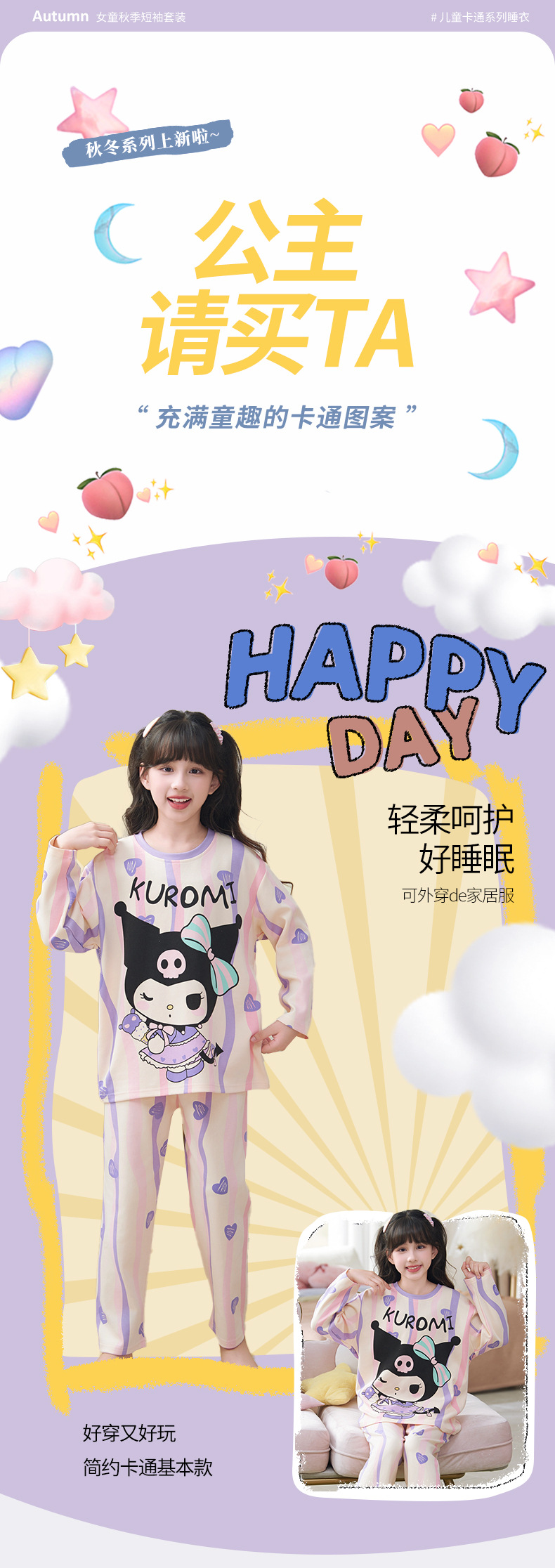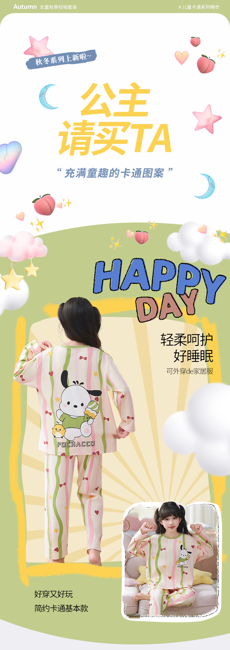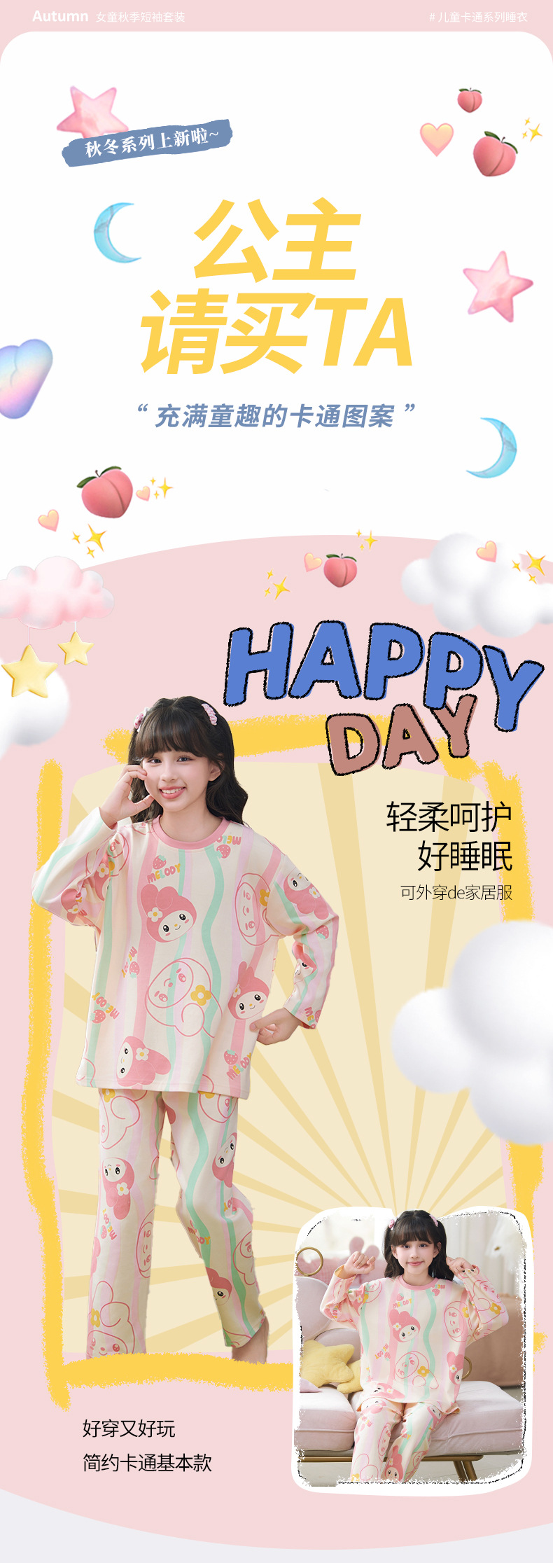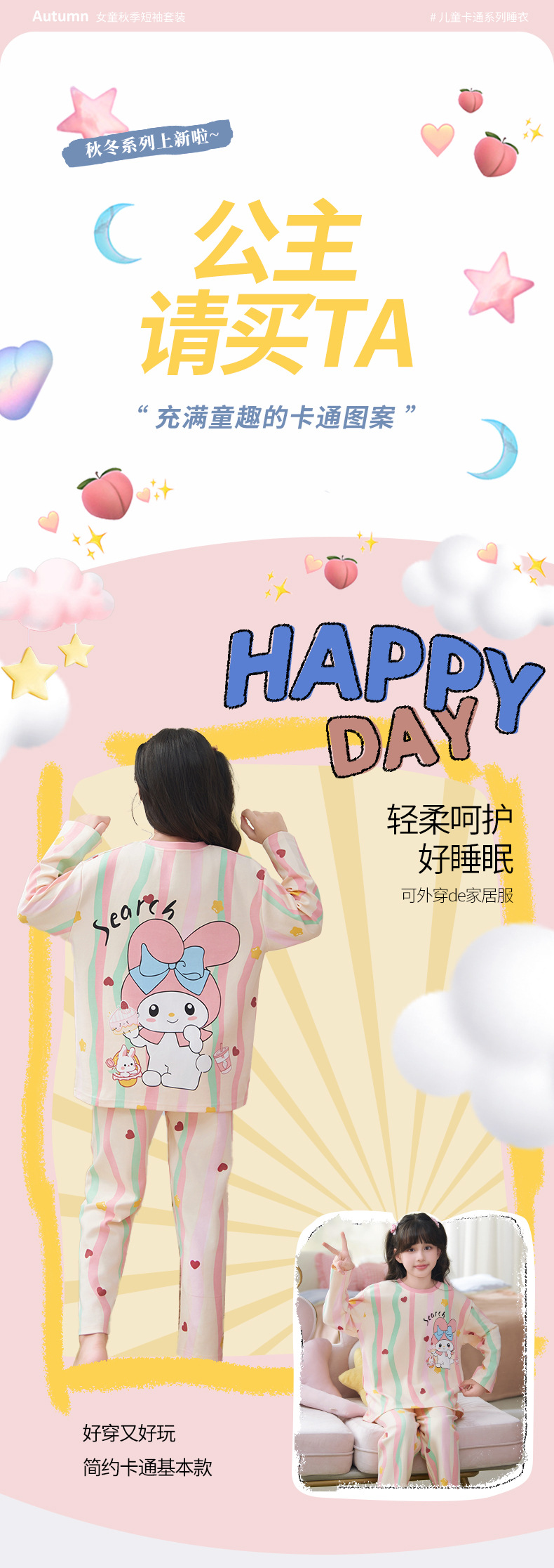 소녀 잠옷 2024 년 봄과 가을 새로운 순면 긴 소매 세트 소녀 큰 어린이 쿨리 학생 홈 옷스토어 가기