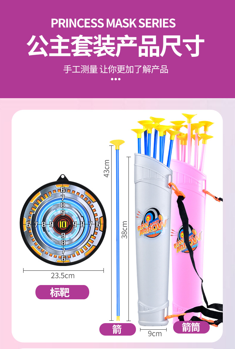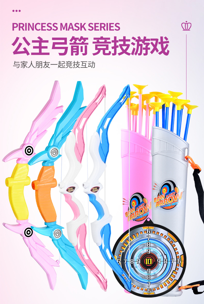 • 공주 핑크 야광 활 - 야광 마스크 + 망토 + 표적 + 화살통 10개 + 후크