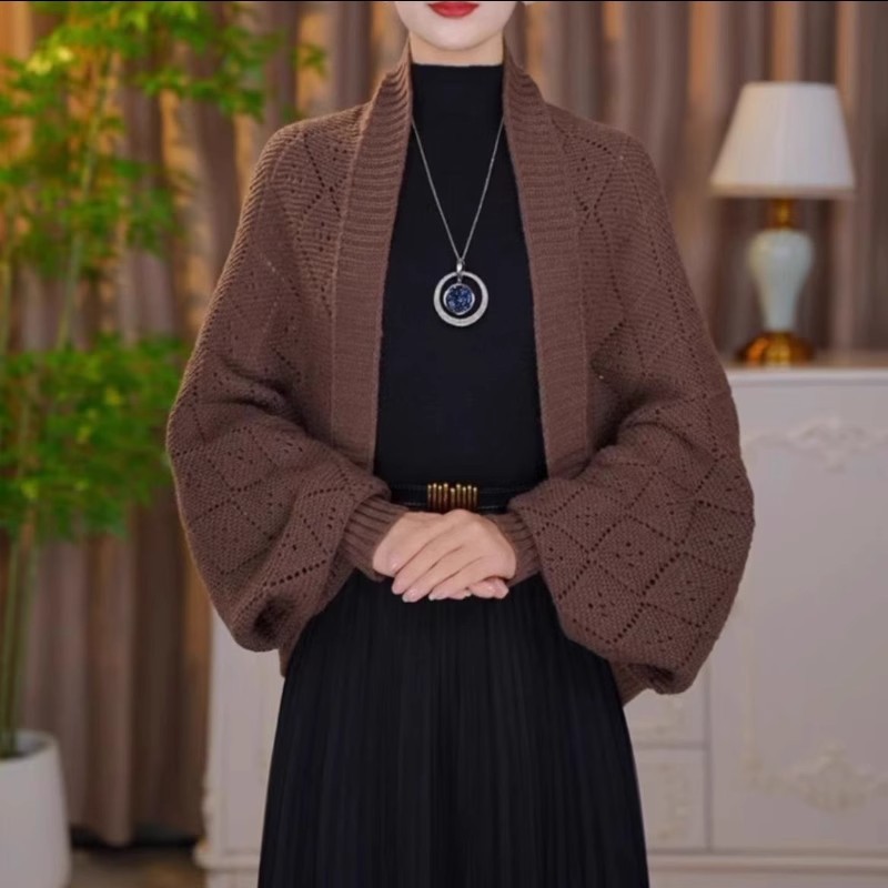 2024 가을과 겨울 새로운 도착 체크 니트 올매치 다기능 따뜻한 목도리 스카프 이중 사용 느슨한 외부 카디건