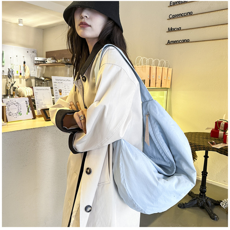 국경 간 여성 가방 새로운 2024 크로스 바디 어깨 가방 봄 나일론 대용량 만두 가방 간단한 빈티지 쇼핑백스토어 가기
