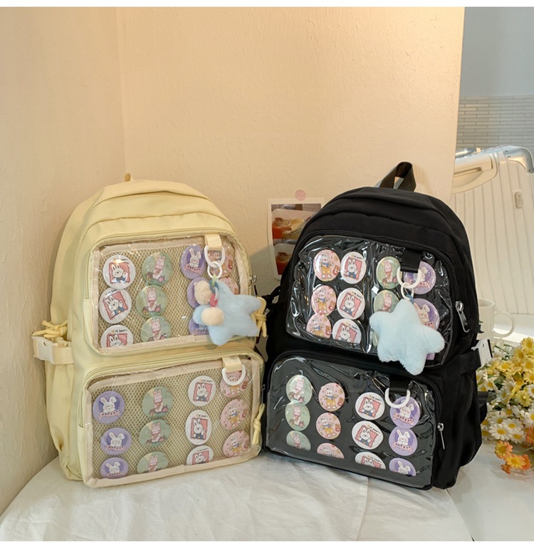 중학생을위한 경량 간단한 배낭 한국 스타일 캐주얼 대용량 Schoolbag 일본 Ins 작은 신선한 투명 배낭스토어 가기