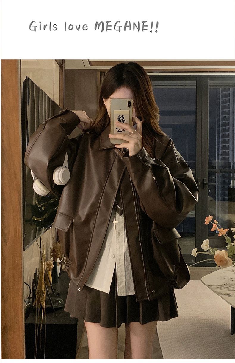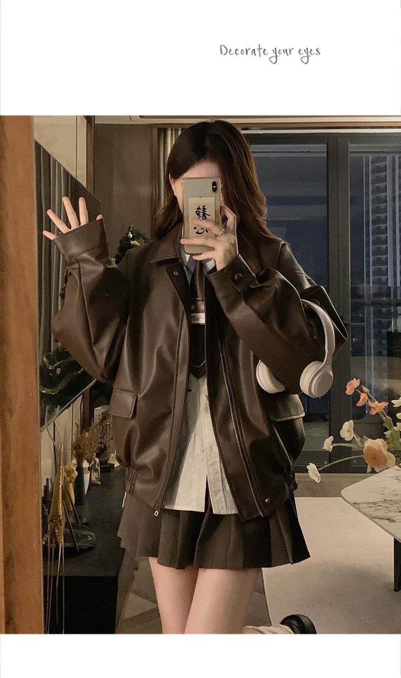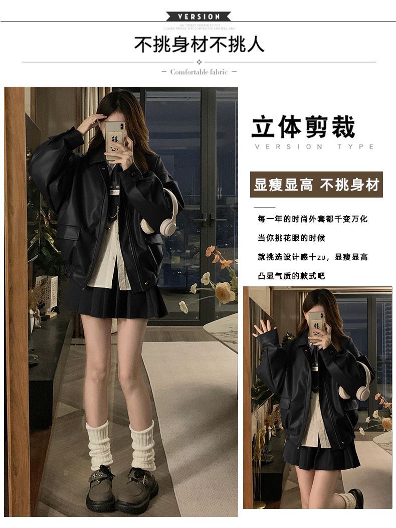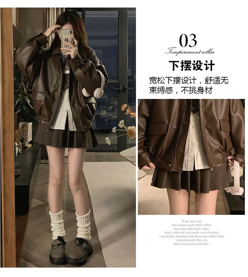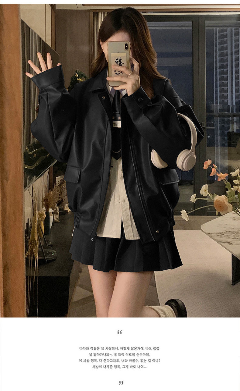 여학생을위한 Ancora 레드 가죽 짧은 재킷 2025 봄, 가을 새로운 미국 복고풍 야구 유니폼 가죽 자켓 탑스토어 가기