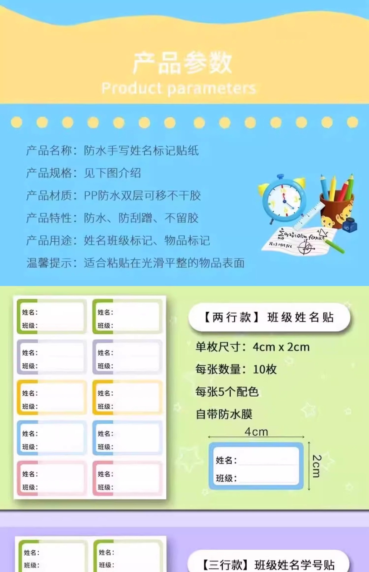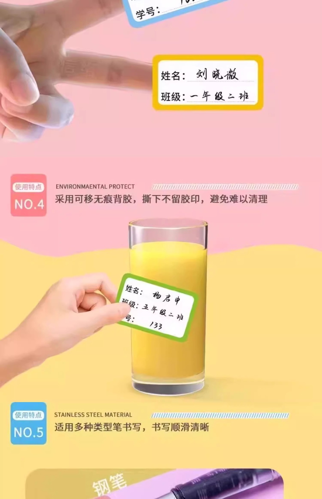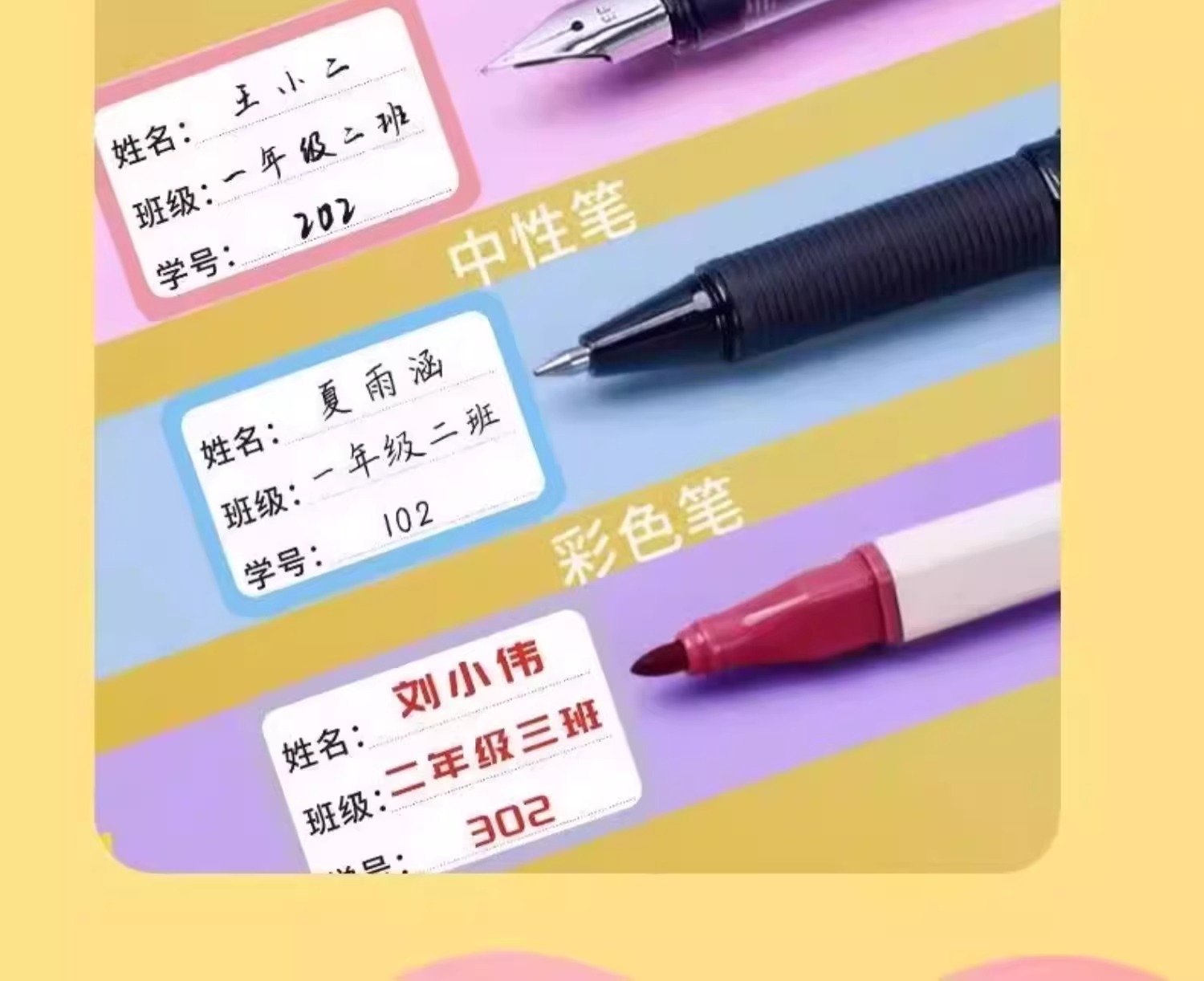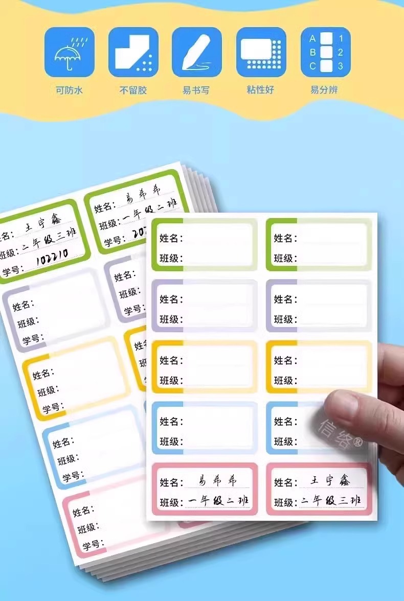 재고 초등학생 필기 이름 스티커 컬러 자체 접착 라벨 스티커 일본과 한국 어린이 스티커 이름 스티커 도매