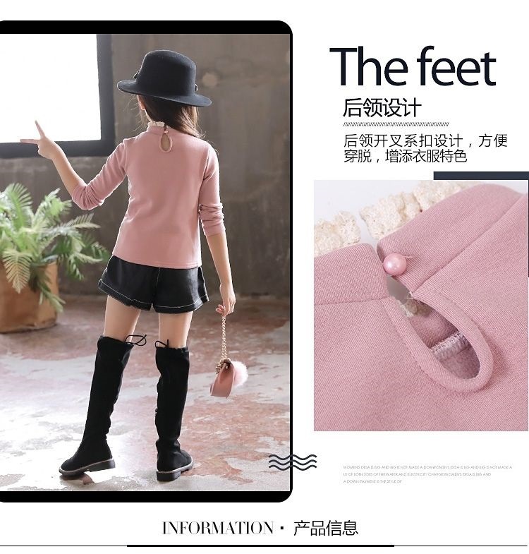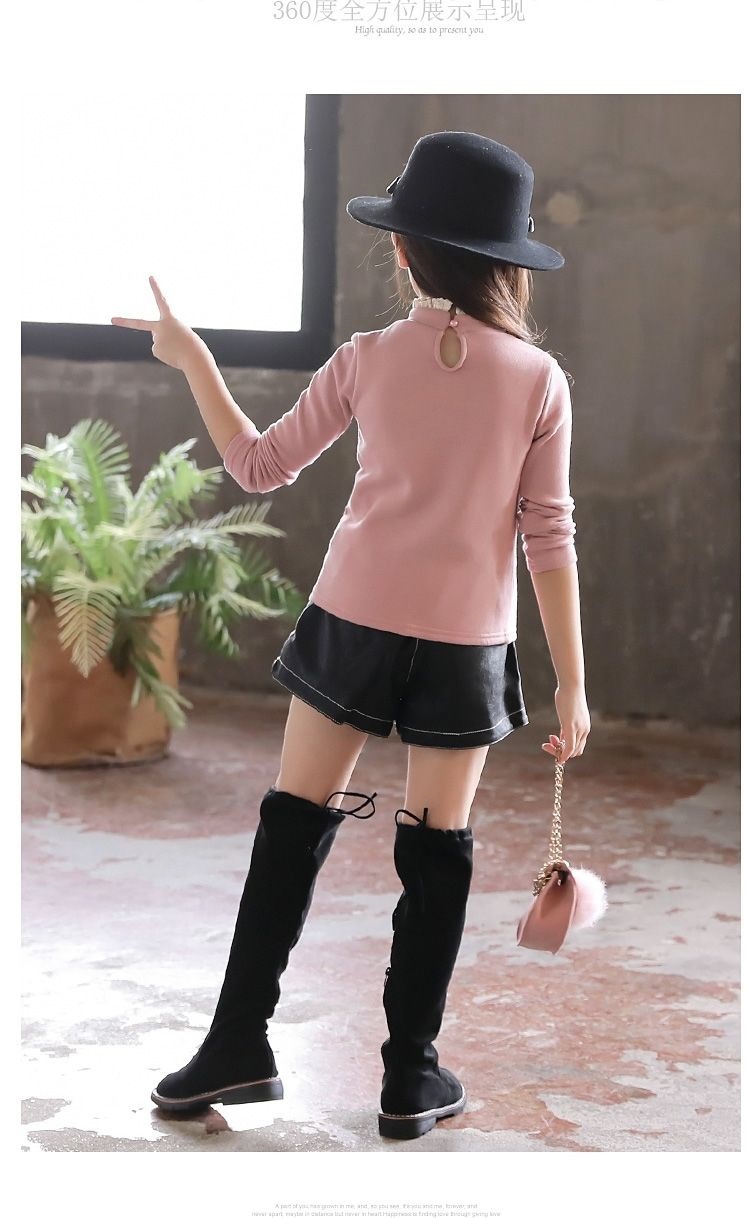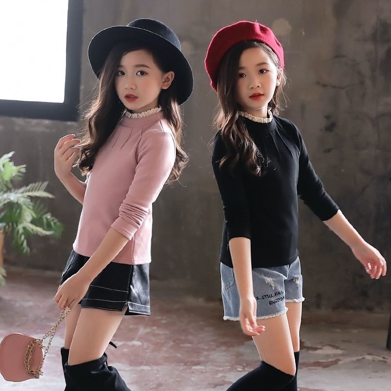 [신규] 여자 바닥 셔츠 2024 기모 두꺼운 높은 칼라 긴팔 티셔츠 가을과 겨울 서양식 새 한국어 버전스토어 가기