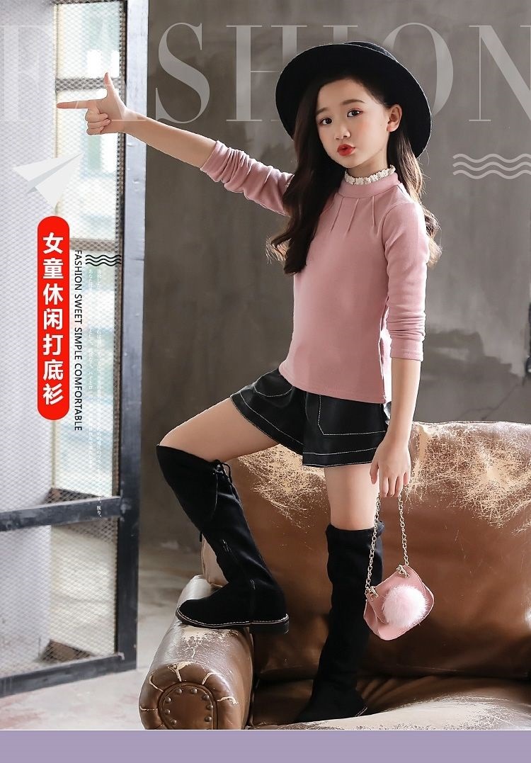[신규] 여자 바닥 셔츠 2024 기모 두꺼운 높은 칼라 긴팔 티셔츠 가을과 겨울 서양식 새 한국어 버전