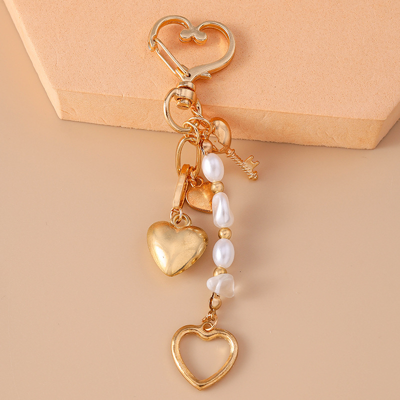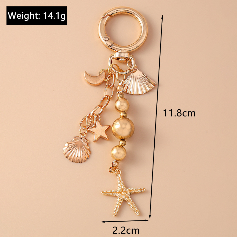 새로운 창조적 인 문 스타 불가사리 키 체인 패션 키 진주 구슬 하트 키 링 백팩 매달린 장식품