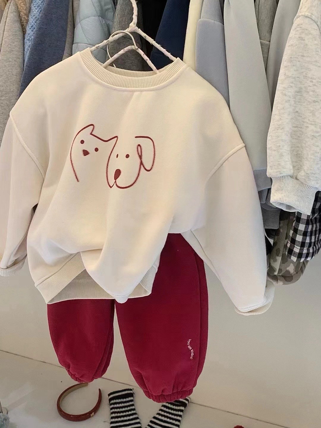 2024 한국 아동복 가을과 겨울 새로운 소년 소녀 일본과 한국식 올 매치 기모 캐주얼 만화 스웨터 세트