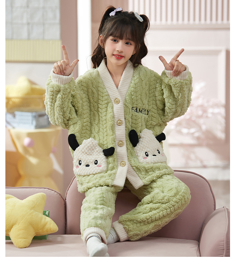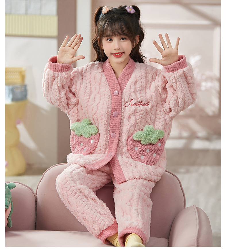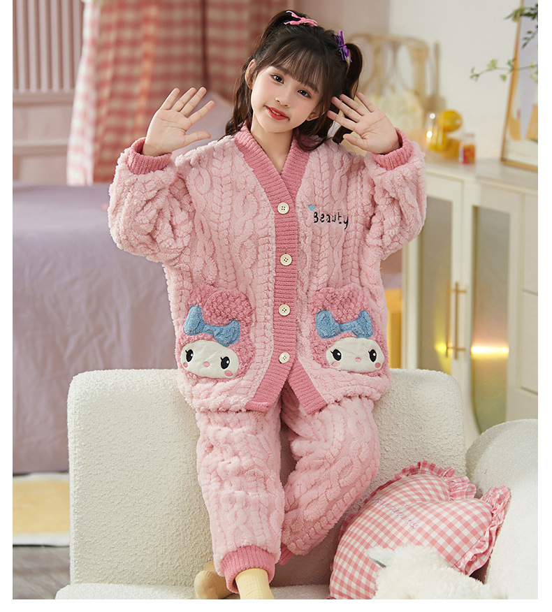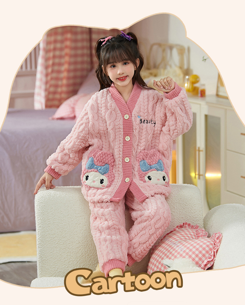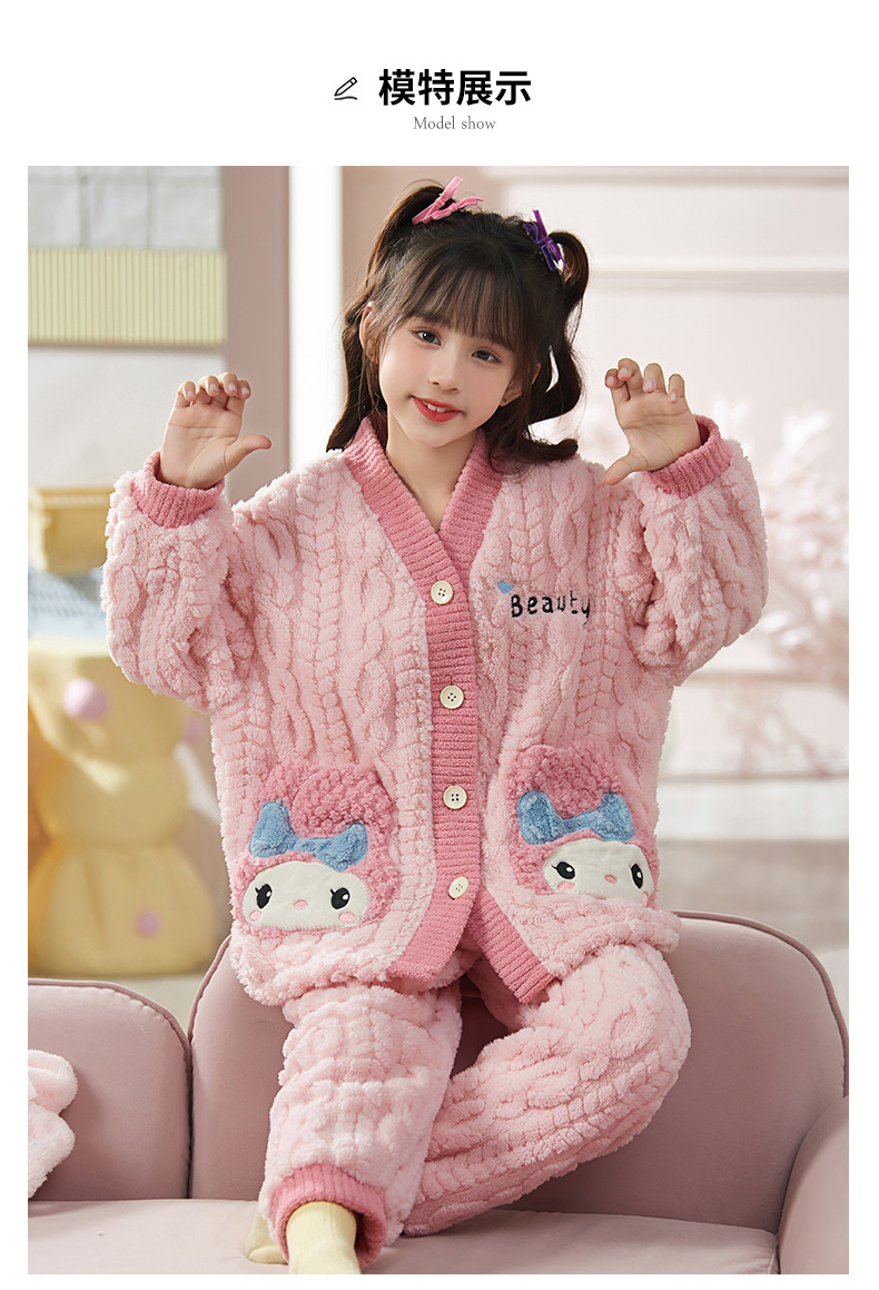 소녀 잠옷 겨울 플란넬 두꺼운 어린이 따뜻한 산호 양털 소녀 만화 중학생 18 세 가정 옷스토어 가기