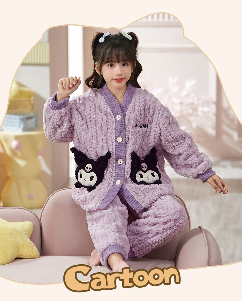 소녀 잠옷 겨울 플란넬 두꺼운 어린이 따뜻한 산호 양털 소녀 만화 중학생 18 세 가정 옷
