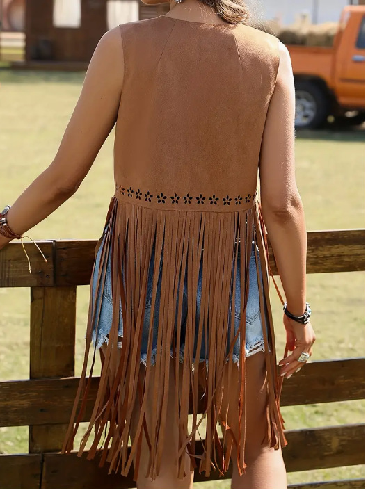 유럽풍 히피 스타일 구멍 장식 프린지 민소매 조끼 여성용 슬릿 프린지 재킷스토어 가기