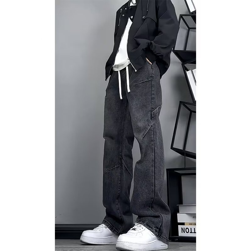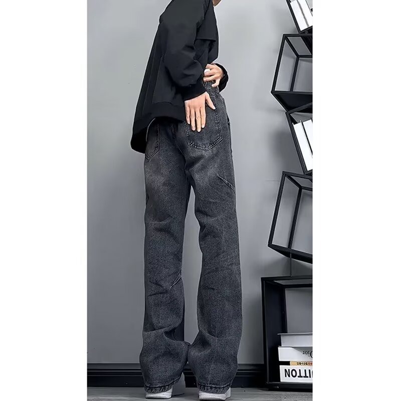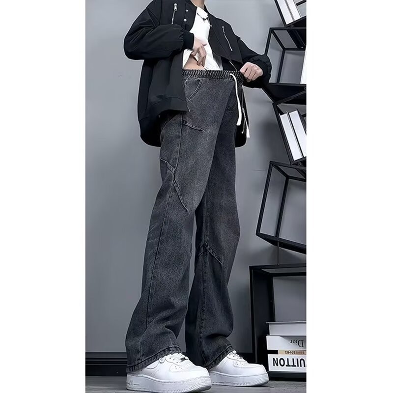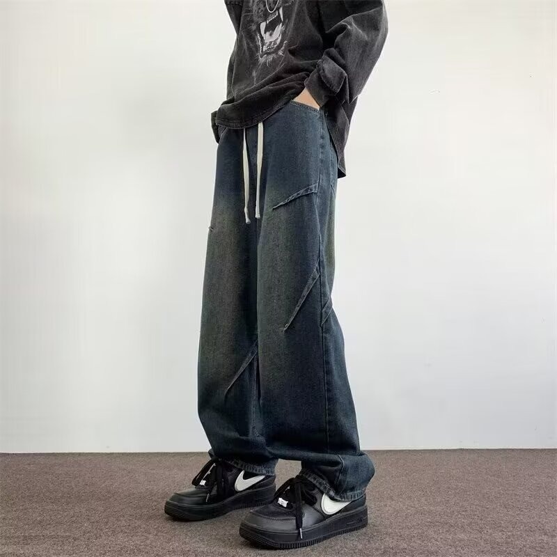 아메리칸 스타일 레트로 하이 스트리트 해체 바지 봄과 가을 드로우 링 허리 소프트 청바지 트렌디 브랜드 세탁 오래 된 약간의 바지