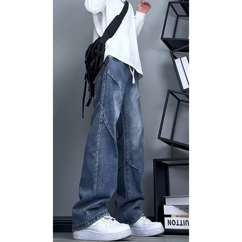 아메리칸 스타일 레트로 하이 스트리트 해체 바지 봄과 가을 드로우 링 허리 소프트 청바지 트렌디 브랜드 세탁 오래 된 약간의 바지스토어 가기