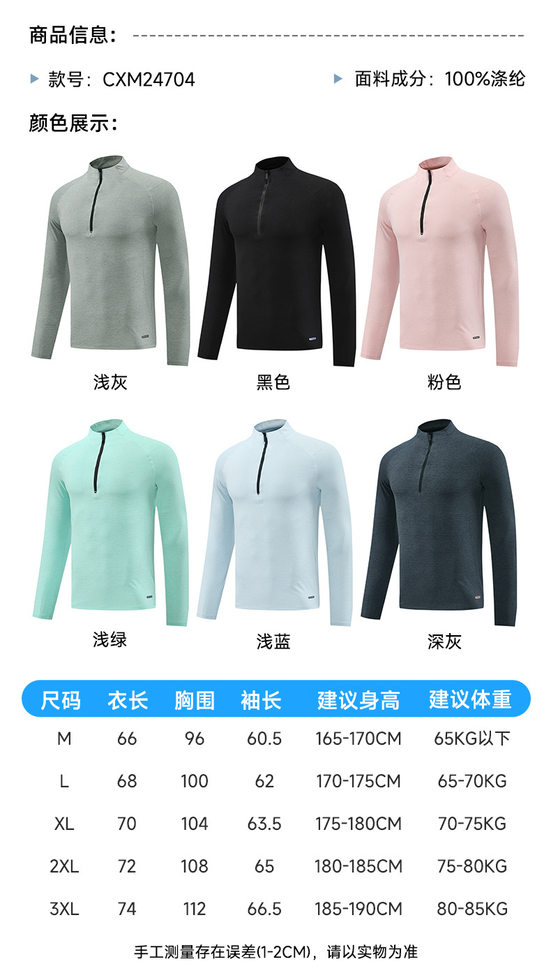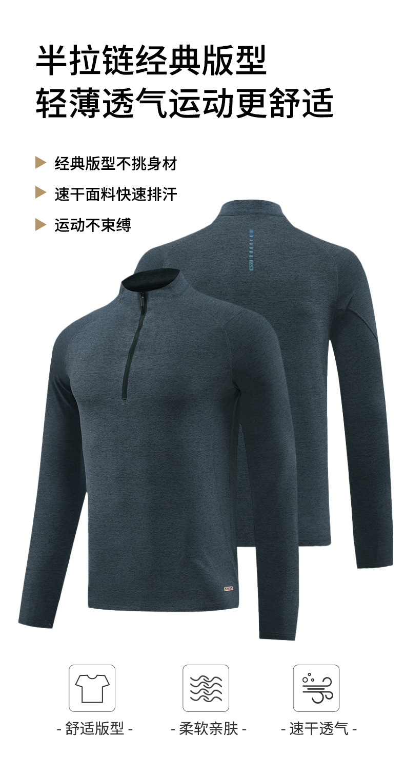 봄과 가을 자외선 차단 긴팔 티셔츠 남성용 스포츠 피트니스 셔츠 하프 지퍼 러닝 탑 속건성 긴팔 슈팅 슈트스토어 가기