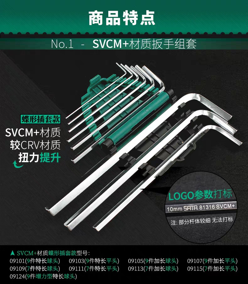 Shida Allen 렌치 세트 엑스트라 롱 Torx 내부 육각형 스크류 드라이버 내부 육각형 렌치 09101-09124