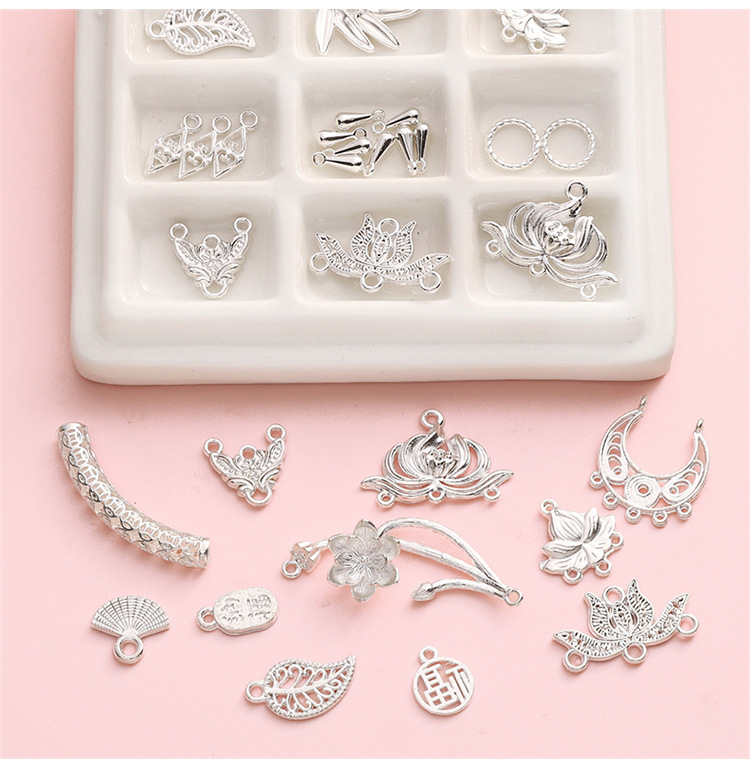 새로운 중국 스타일의 실버 합금 싱글 링 펜던트 팔꿈치 하프 팔찌 액세서리 DIY 수제 구슬 팔찌 소재 가방