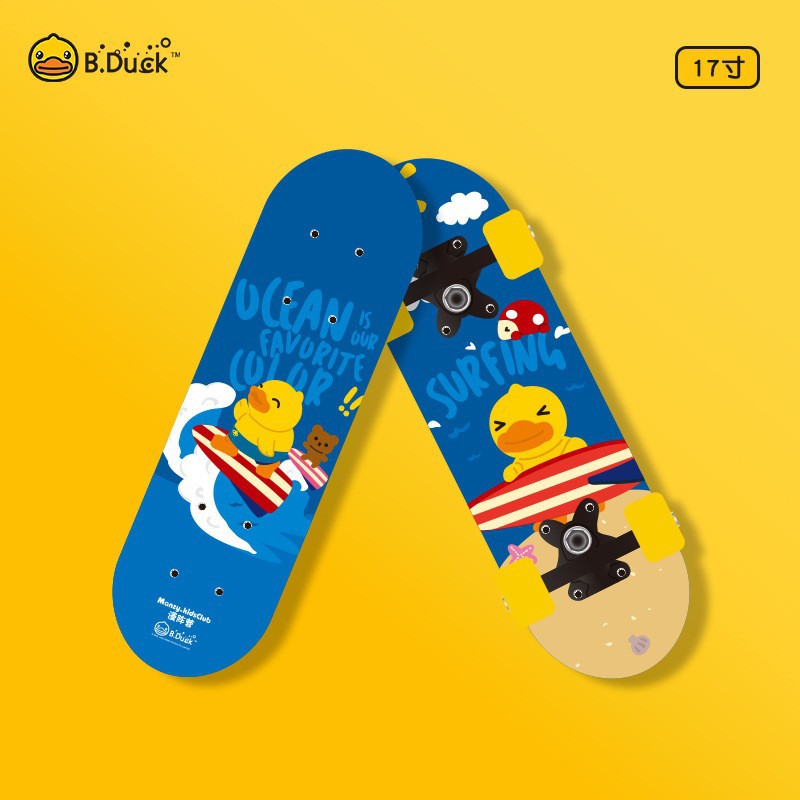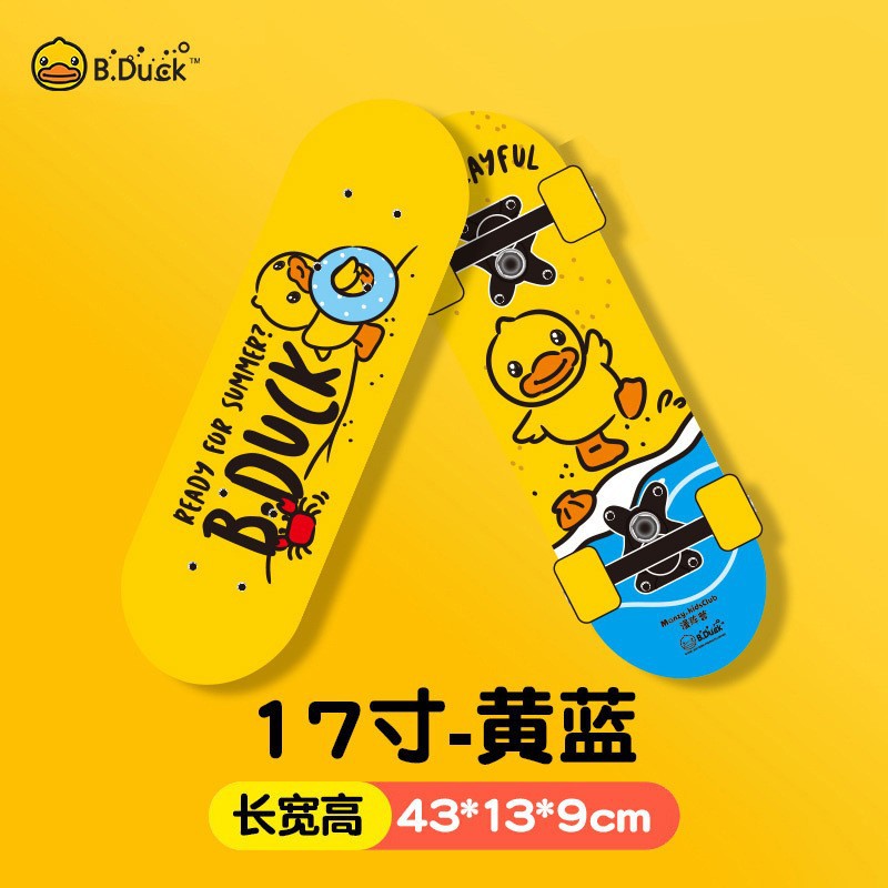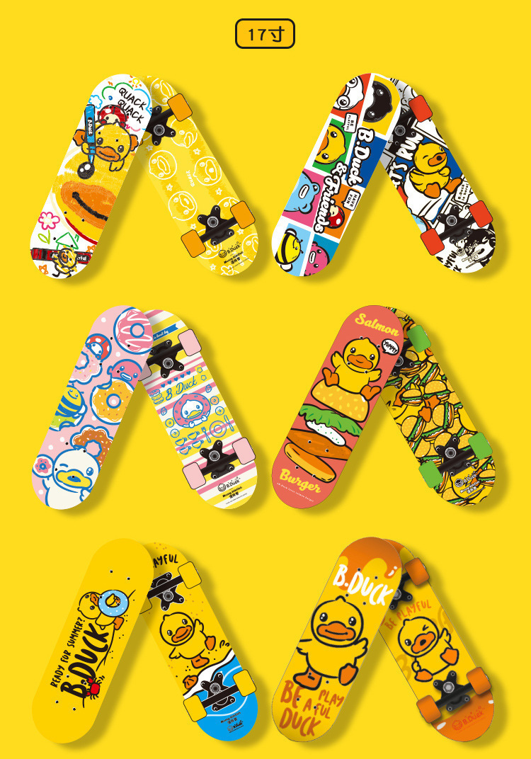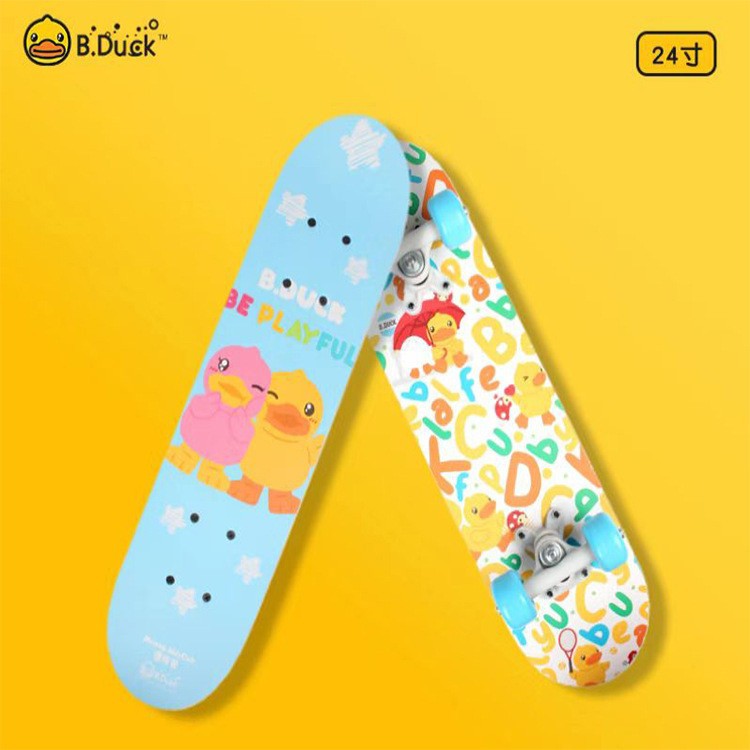 B. 오리 작은 노란색 오리 스케이트 보드 소년과 소녀 초보자 4 륜 야외 더블 업 만화 미니 장난감 스쿠터