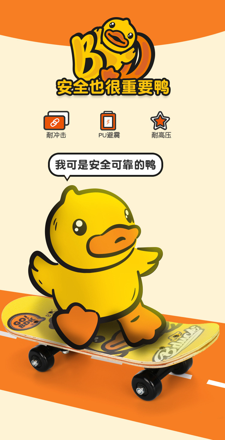B. 오리 작은 노란색 오리 스케이트 보드 소년과 소녀 초보자 4 륜 야외 더블 업 만화 미니 장난감 스쿠터스토어 가기