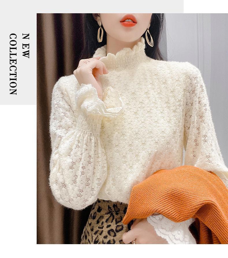 2120 레이스 기모 베이스 셔츠 여자의 가을 및 겨울 새로운 스타일 내부 높은 목 셔츠 스크럽 외부 착용 두꺼운 탑