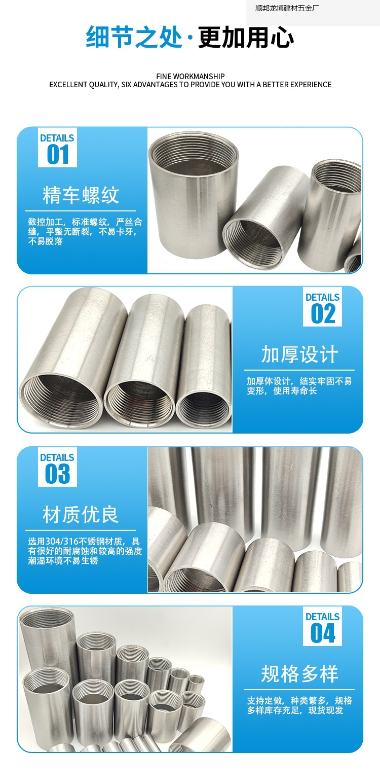 304 스테인레스 스틸 연장 된 더블 헤드 내부 와이어 2 헤드 내부 실 수도관 용접 연장 연속 내부 치아 파이프 조인트스토어 가기