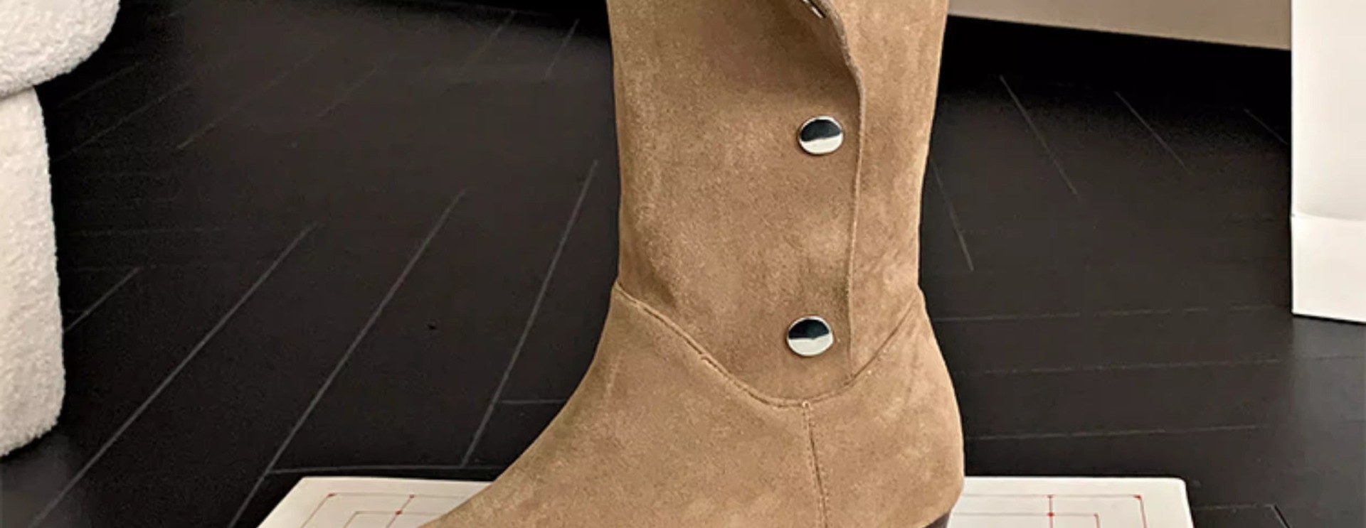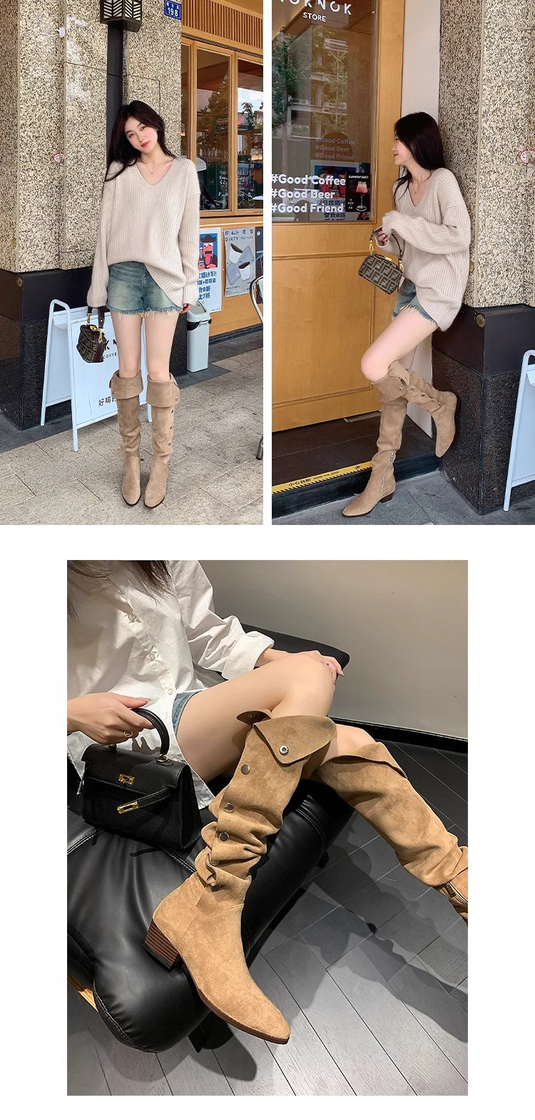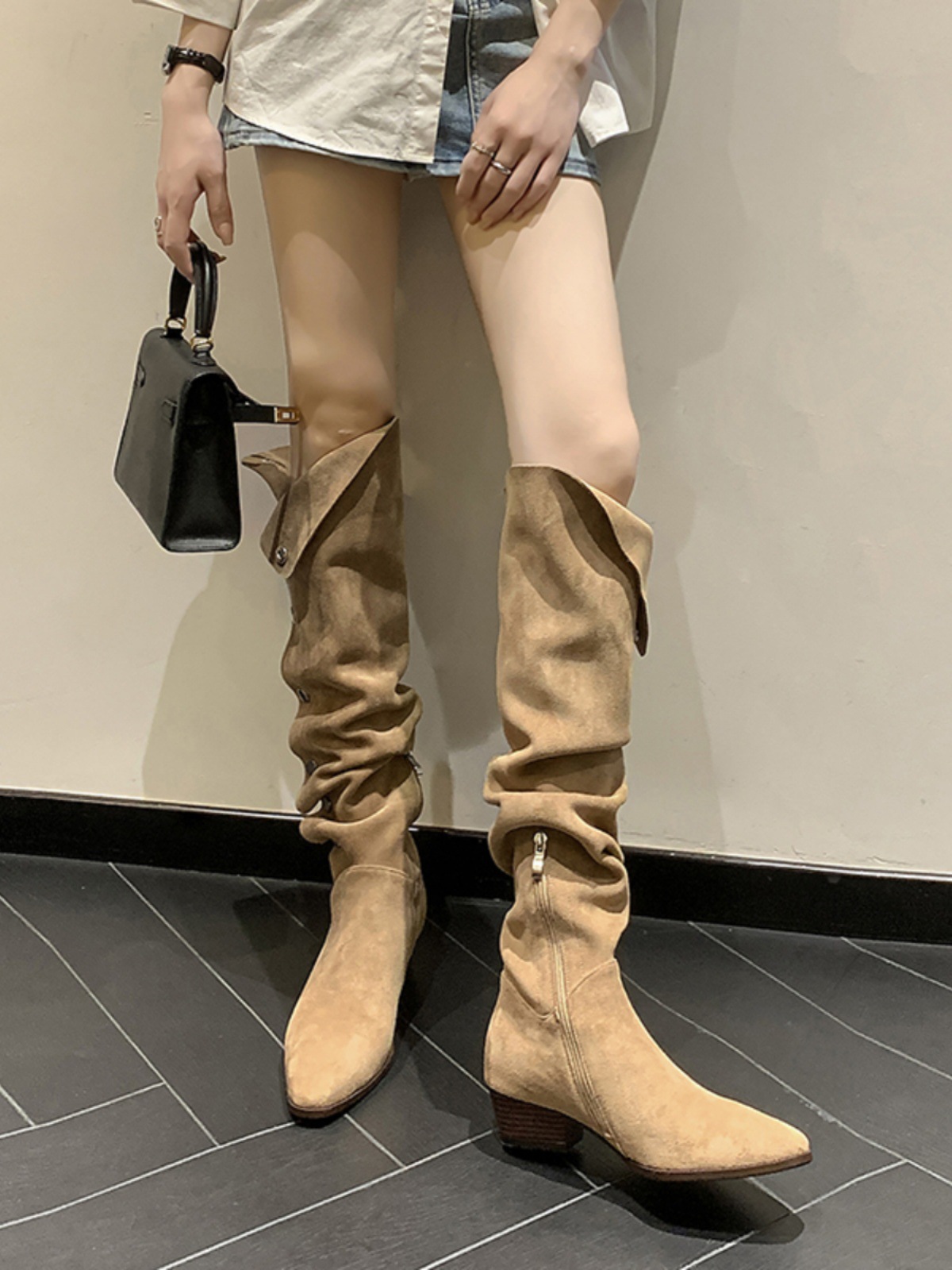 즉시 배송~ 여성용 롱/미디/숏 라이더 부츠 2025 스웨이드 데님 롱부츠 뾰족코 굵은 굽 부츠