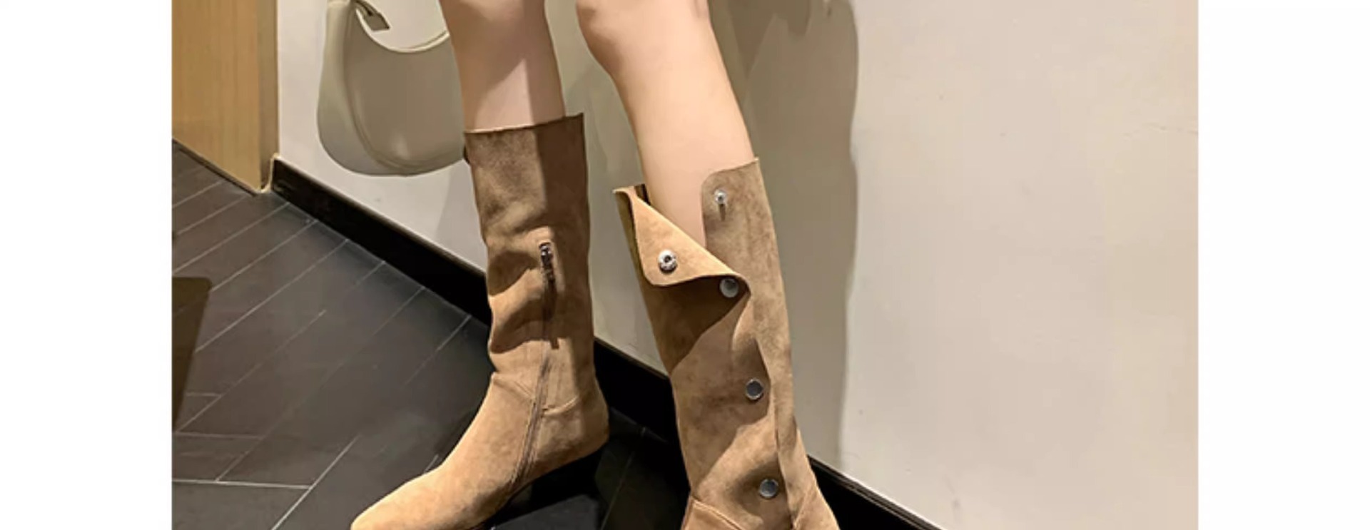 즉시 배송~ 여성용 롱/미디/숏 라이더 부츠 2025 스웨이드 데님 롱부츠 뾰족코 굵은 굽 부츠스토어 가기