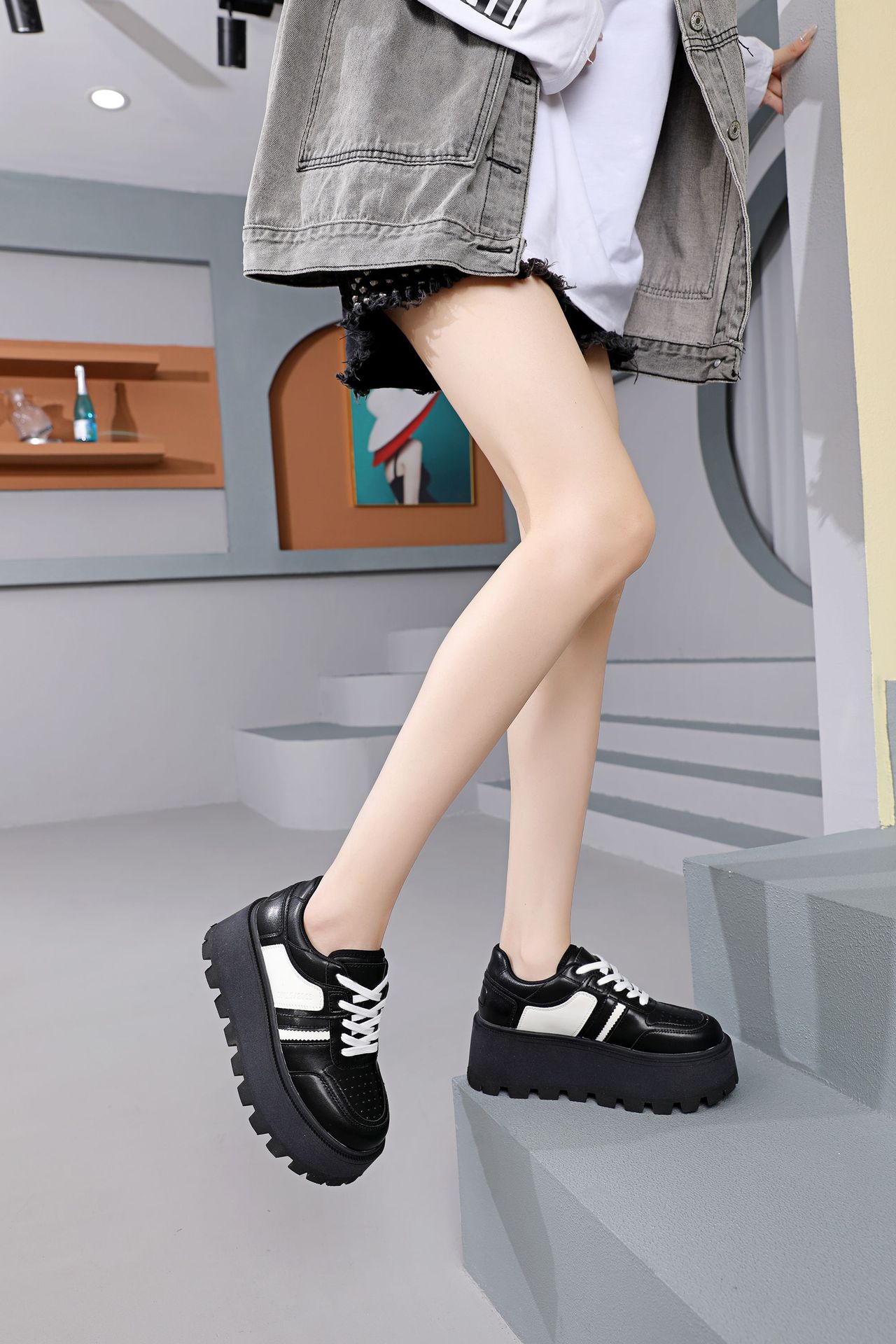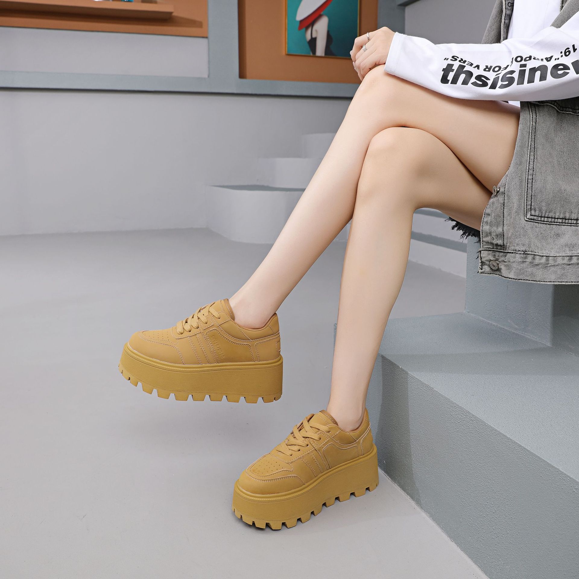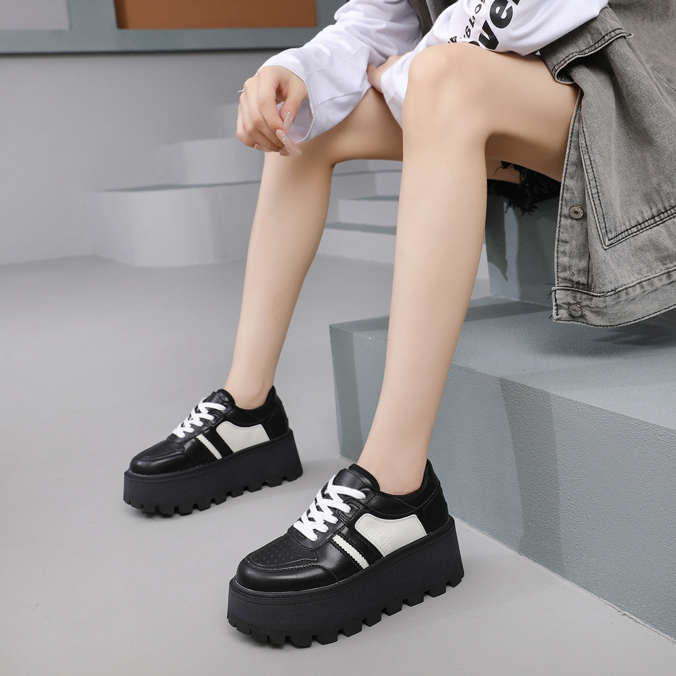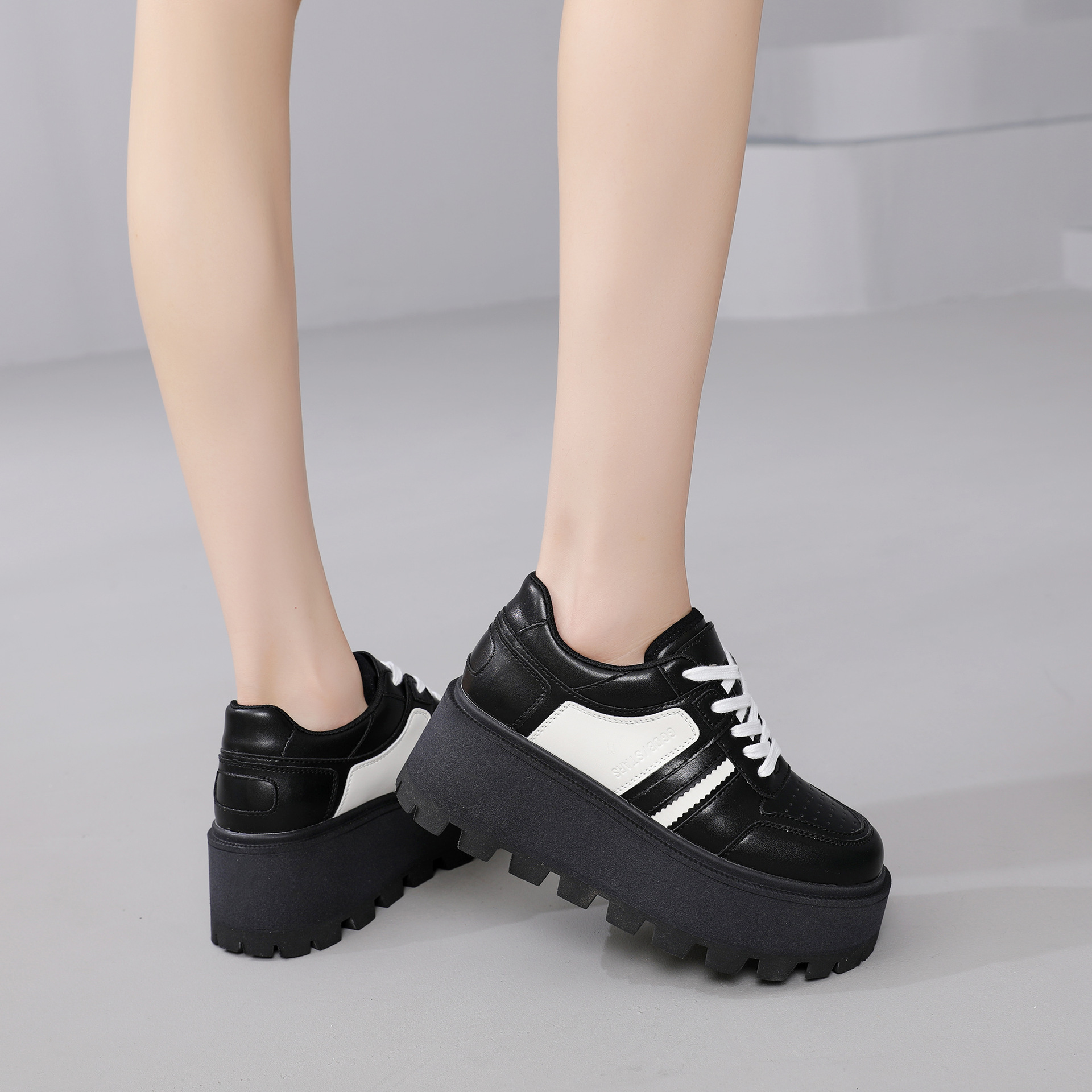 Zhao Liying with the 2024 가을 새로운 틈새 레트로 운동화 가죽 두꺼운 밑창 소형 여성용 플랫폼 신발스토어 가기