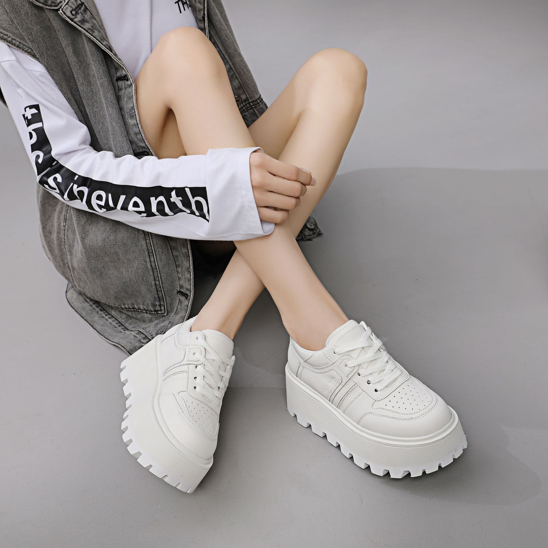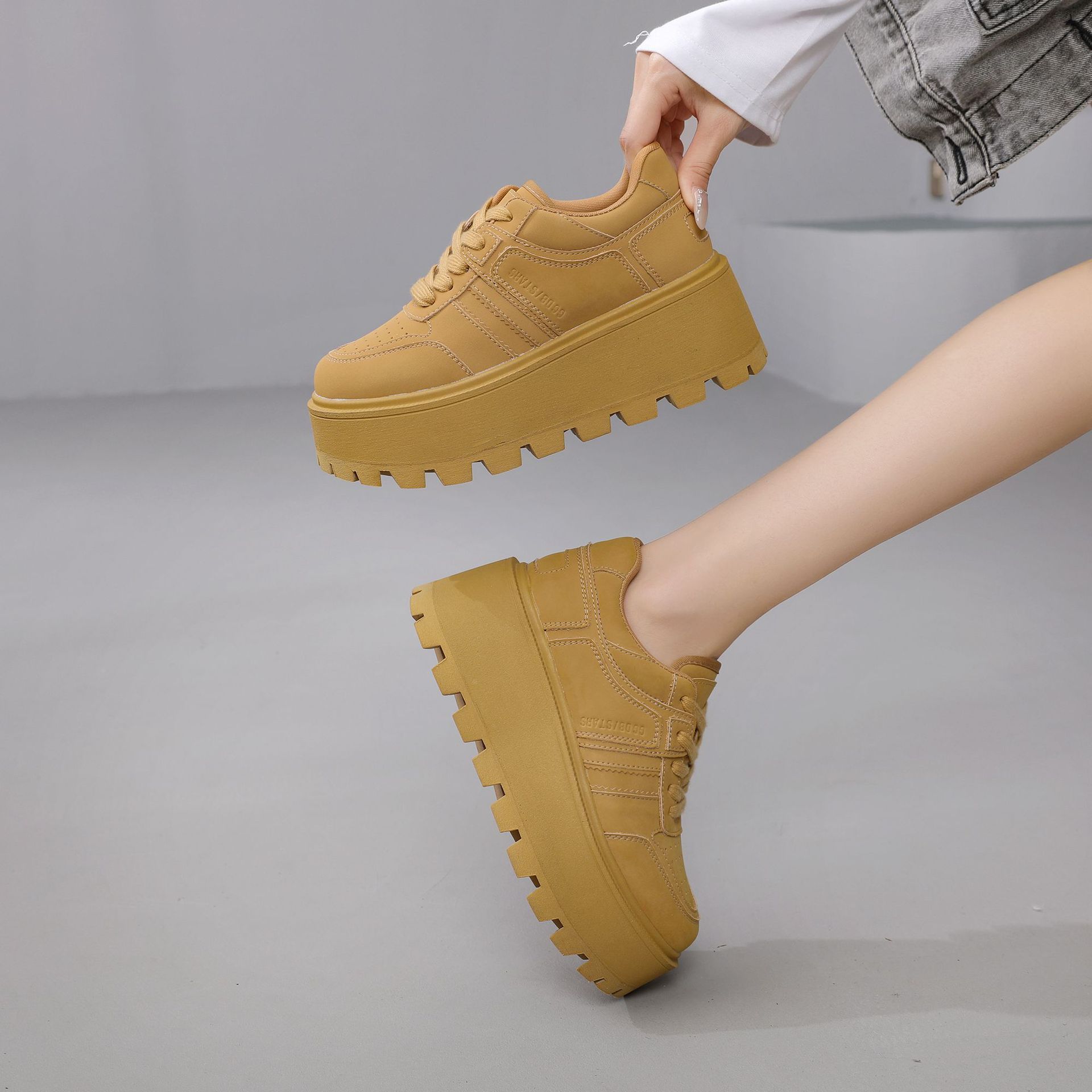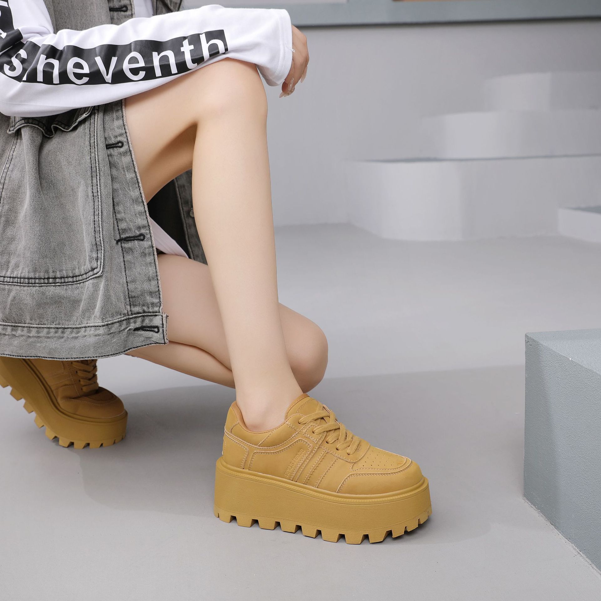 Zhao Liying with the 2024 가을 새로운 틈새 레트로 운동화 가죽 두꺼운 밑창 소형 여성용 플랫폼 신발스토어 가기