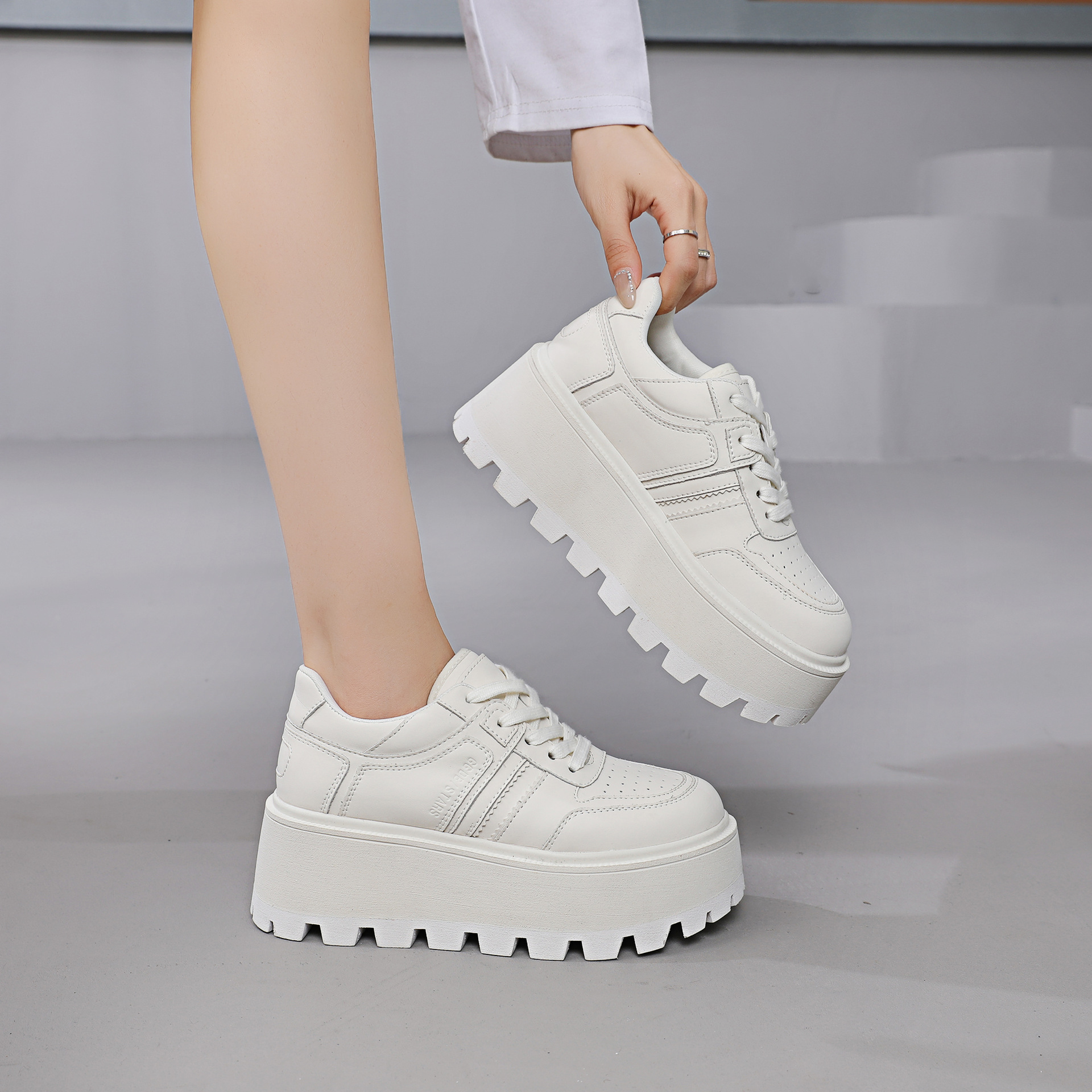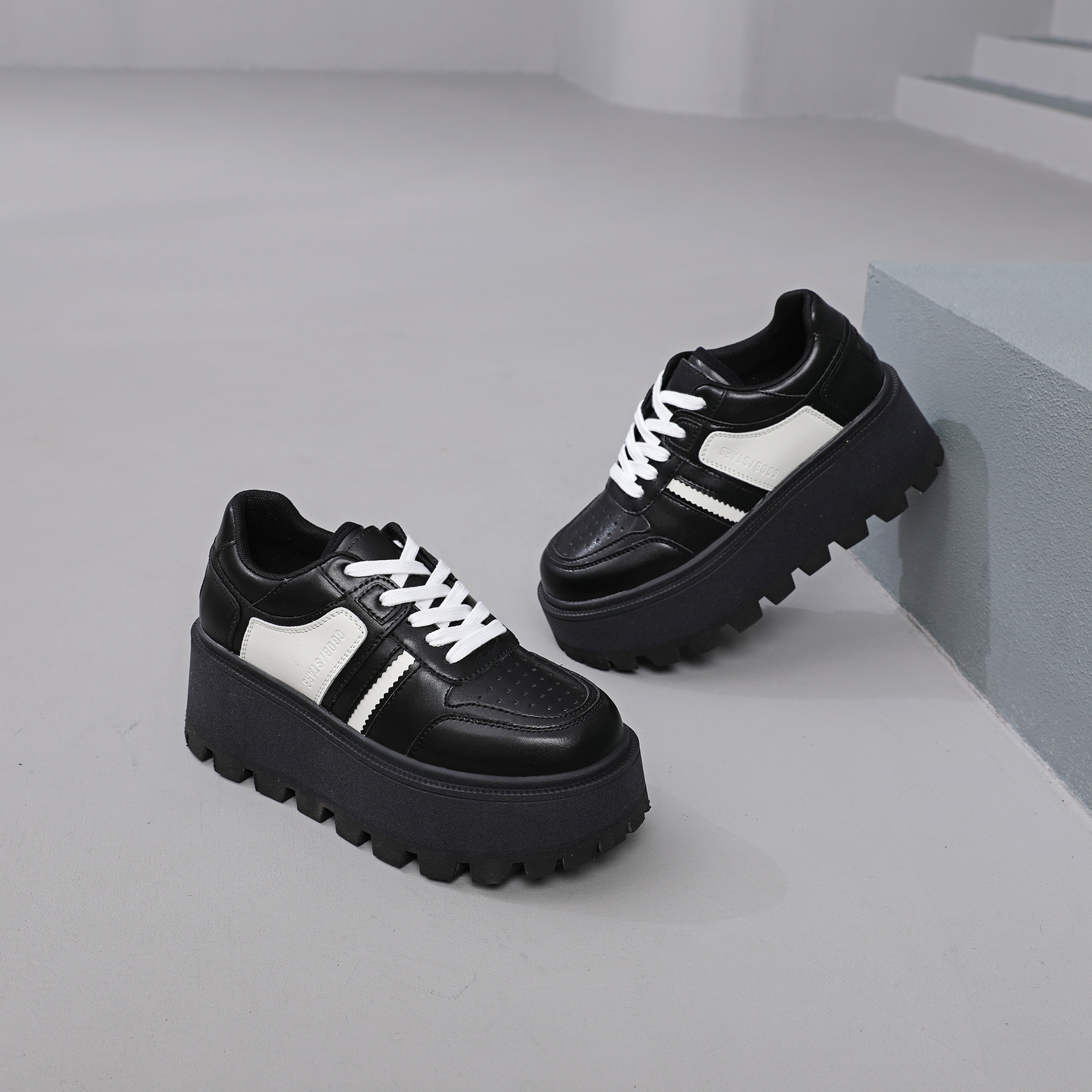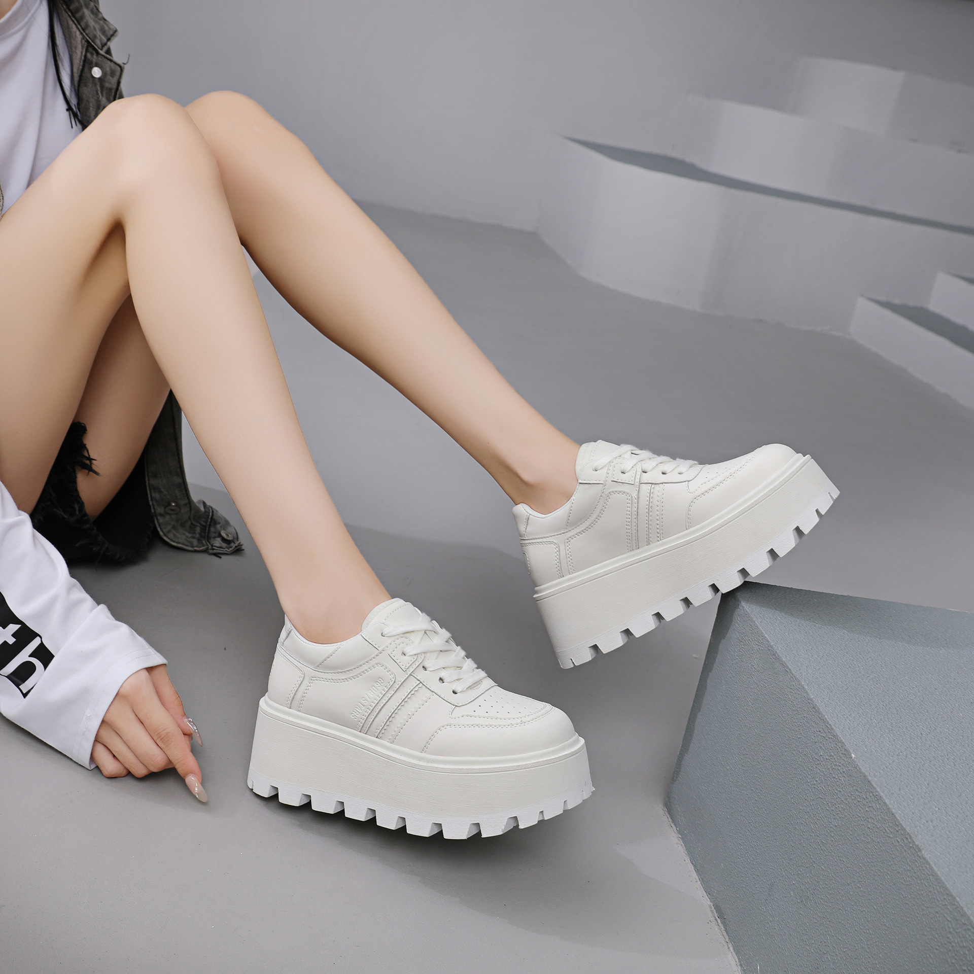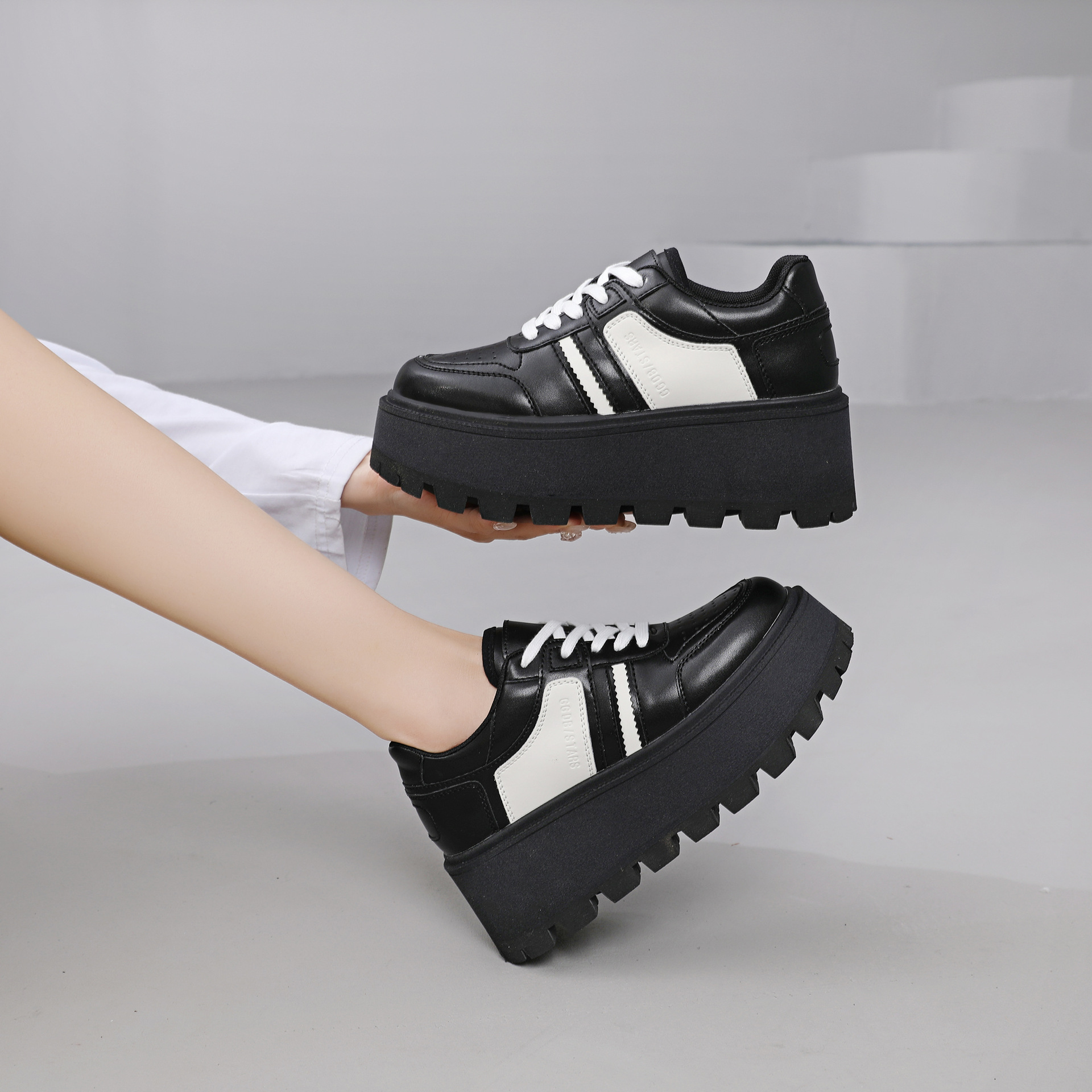 Zhao Liying with the 2024 가을 새로운 틈새 레트로 운동화 가죽 두꺼운 밑창 소형 여성용 플랫폼 신발스토어 가기