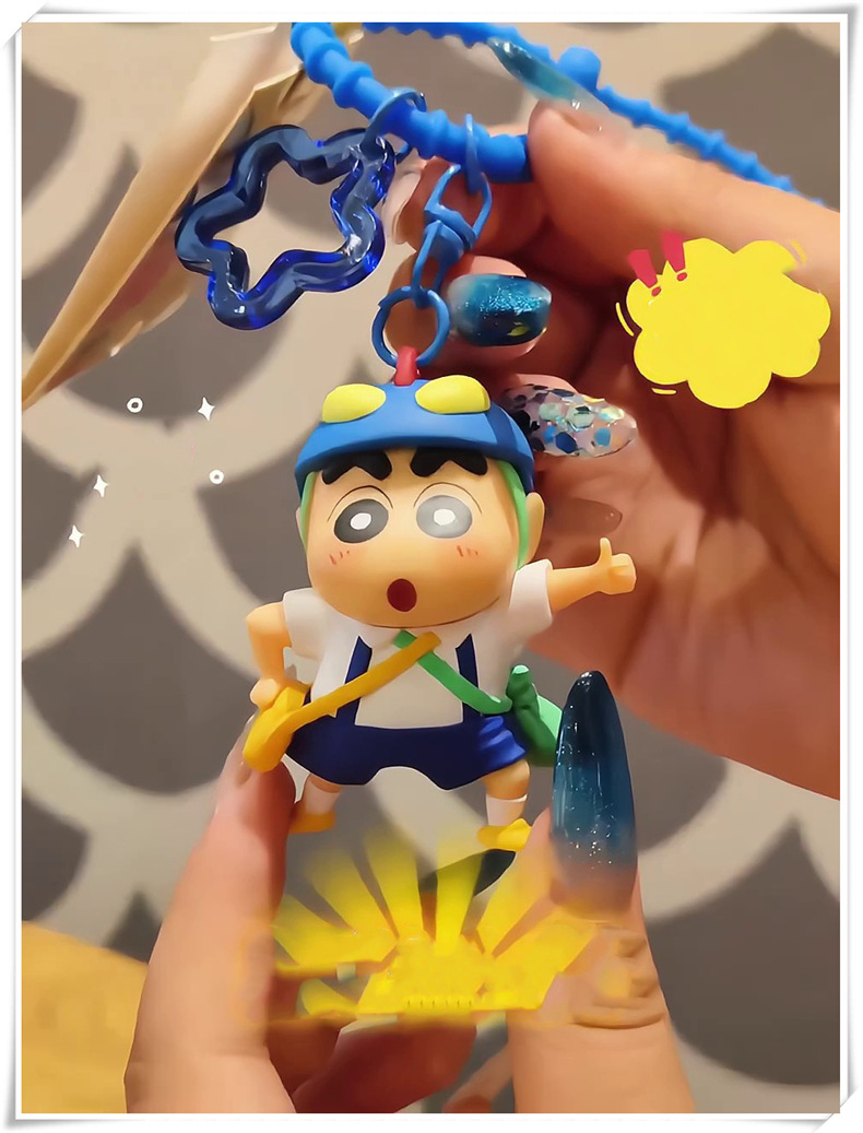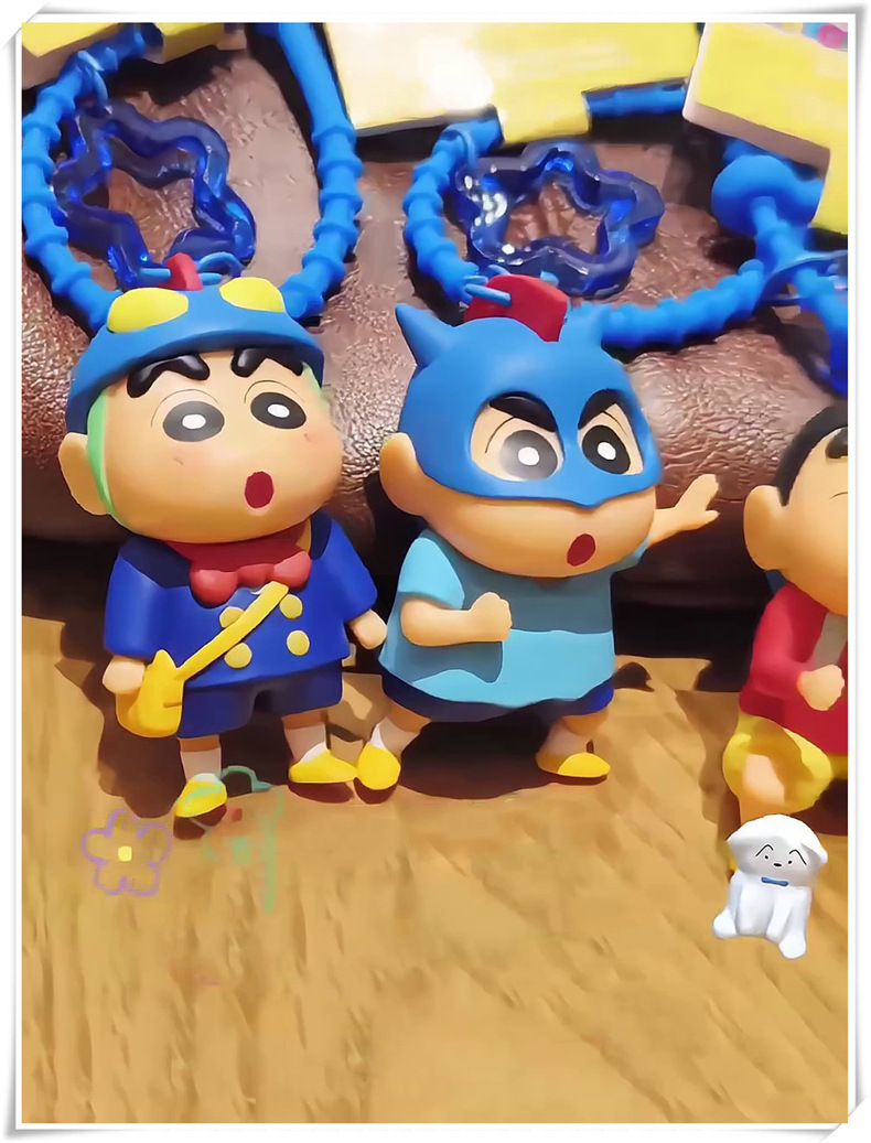 새로운 정품 크레용 작은 새로운 키 체인 펜던트 인형 키 링 체인 인형 기계 선물 도매 만화 인형