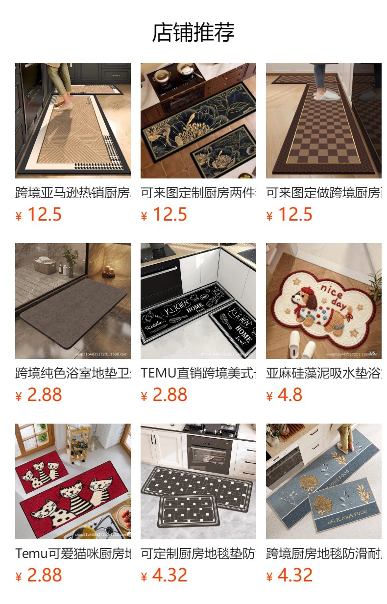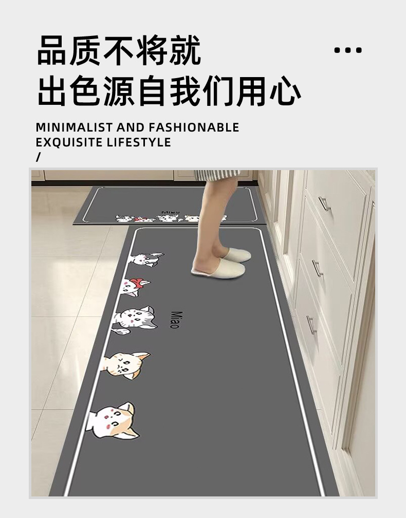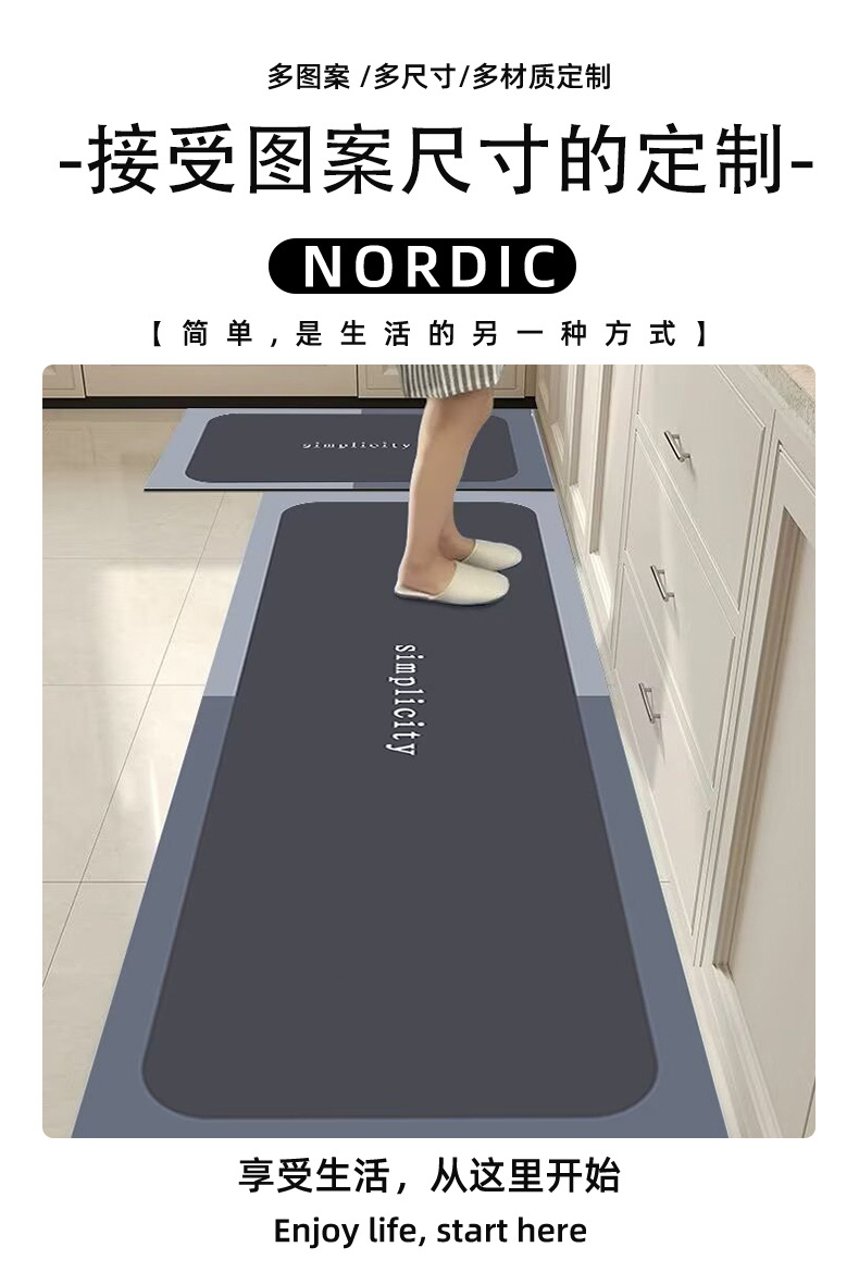 跨境厨房地垫耐脏防滑垫硅藻泥吸水廚房地墊定制可裁剪厨房地毯
