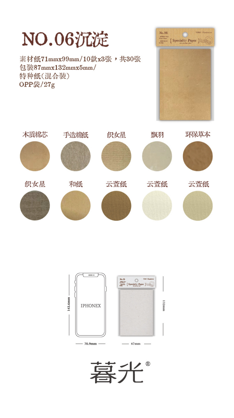 황혼의 혼합 멀티 소재 특수 종이 손 계정 생활 시리즈 기본 색상 콜라주 백 30 6 옵션