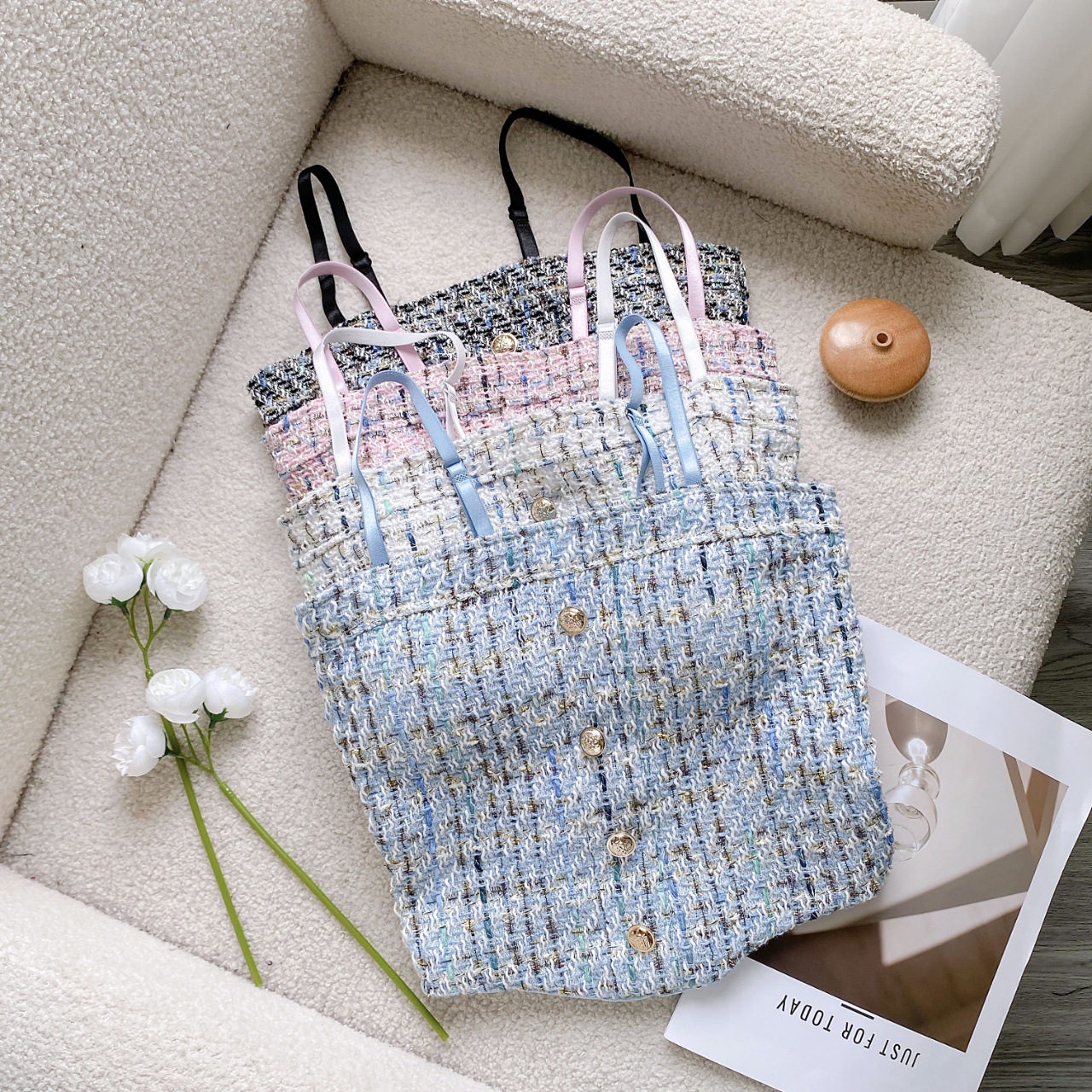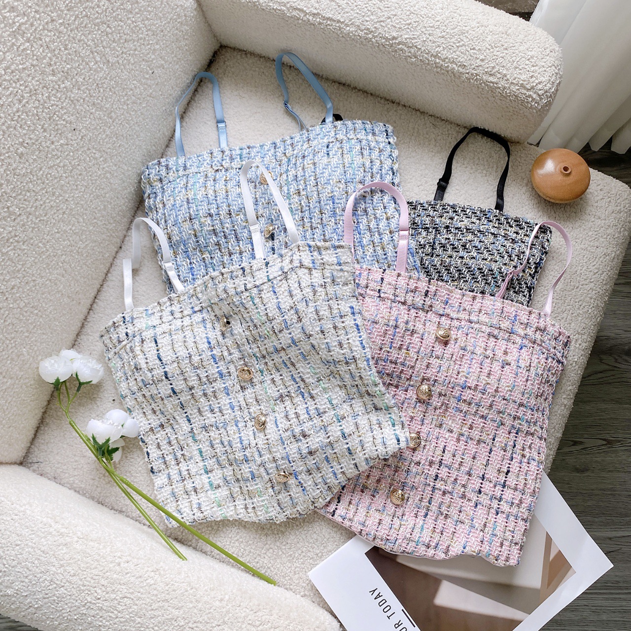 한국 스타일 샤넬 스타일 짠 격자 무늬 카미 솔 조끼 여성의 아름다운 뒷면 스파이스 소녀의 슬림 핏 올 매치 보투 탑스토어 가기
