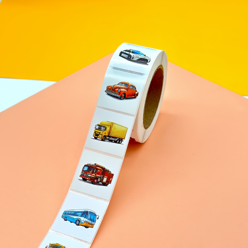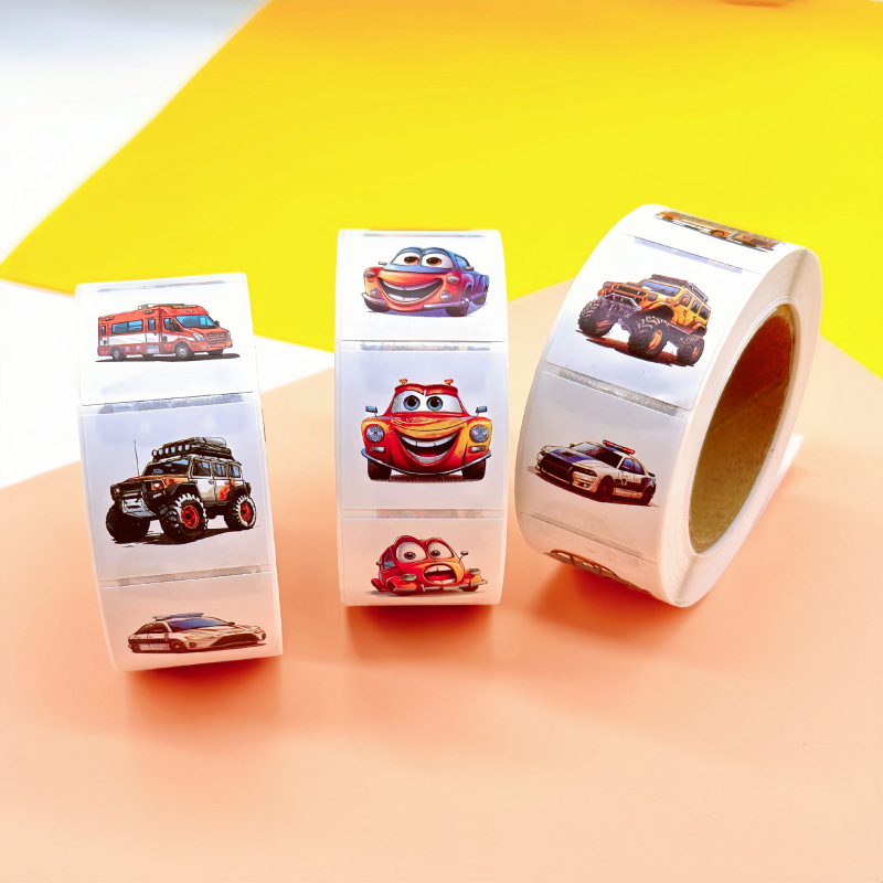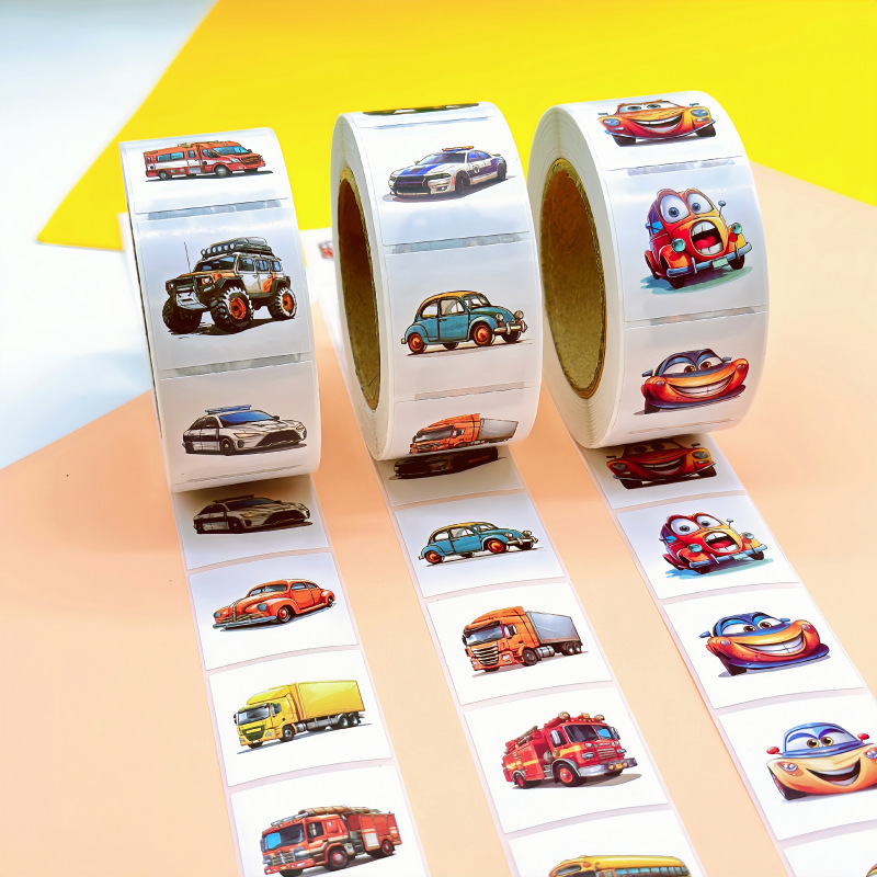 원래 만화 자동차 사각형 스티커 아마존 국경 롤 코팅 종이 스티커 만화 어린이 스티커 도매