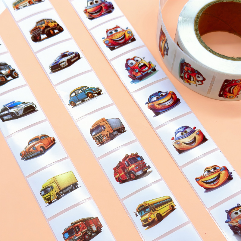 원래 만화 자동차 사각형 스티커 아마존 국경 롤 코팅 종이 스티커 만화 어린이 스티커 도매스토어 가기