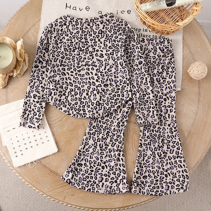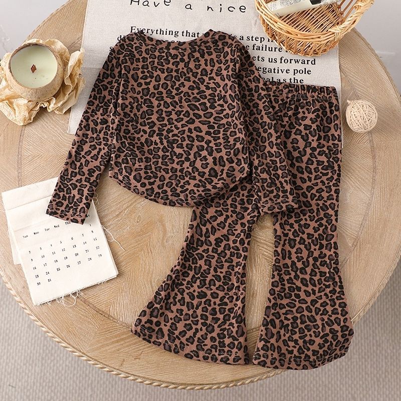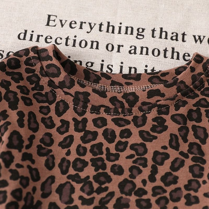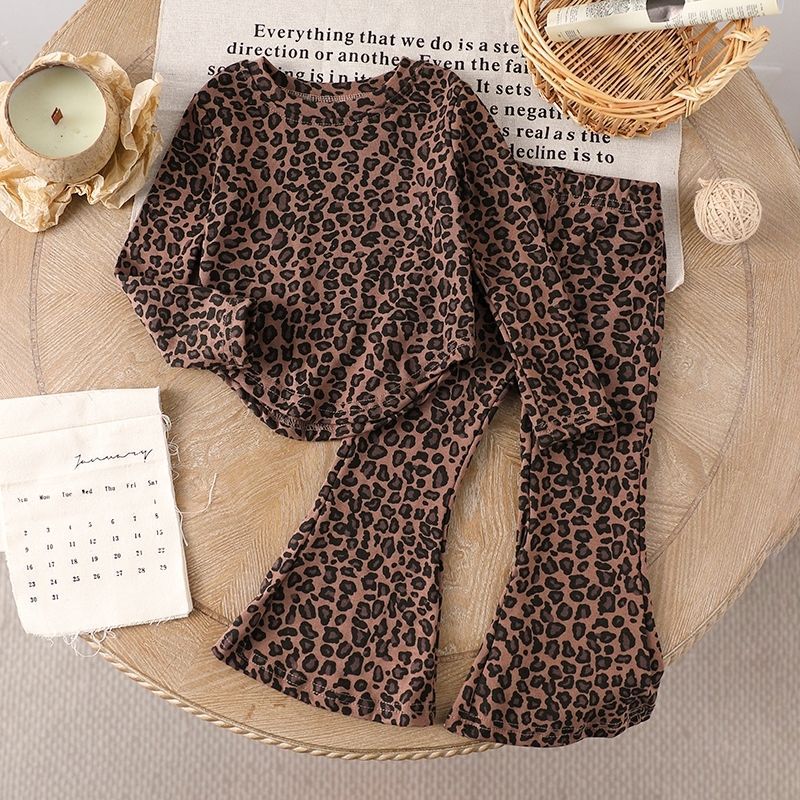 봄과 가을 소녀 세트 아기의 서양식 어린이 성격 트렌디 인터넷 인기 레오파드 무늬 불규칙한 티셔츠 바지 바지스토어 가기