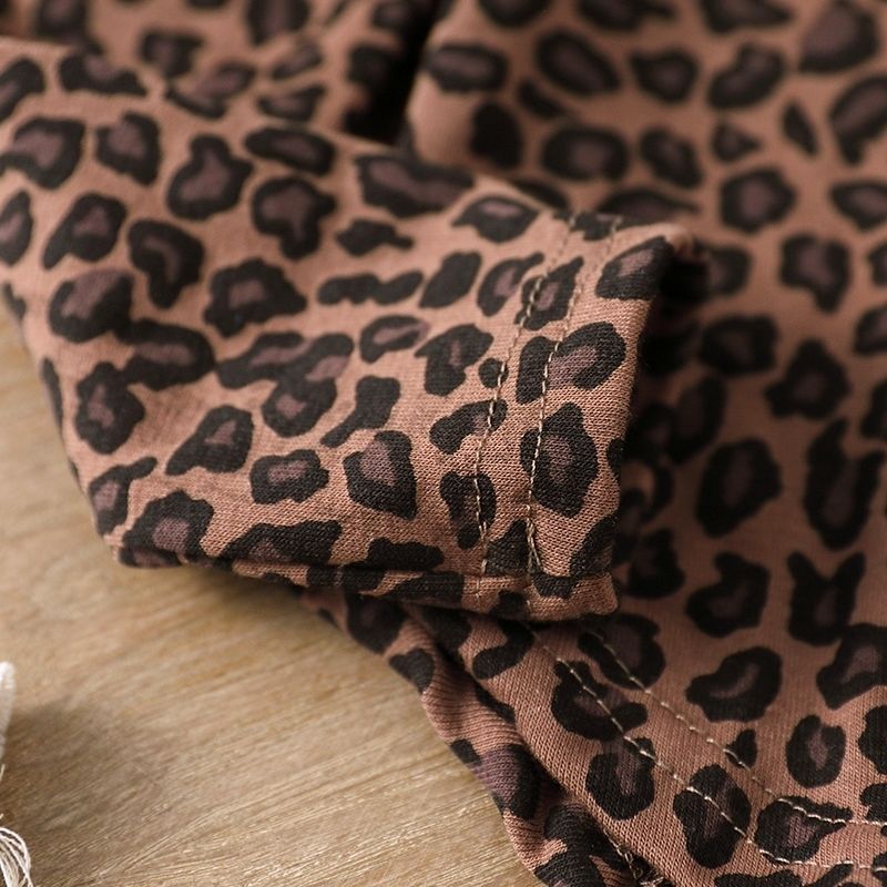 봄과 가을 소녀 세트 아기의 서양식 어린이 성격 트렌디 인터넷 인기 레오파드 무늬 불규칙한 티셔츠 바지 바지