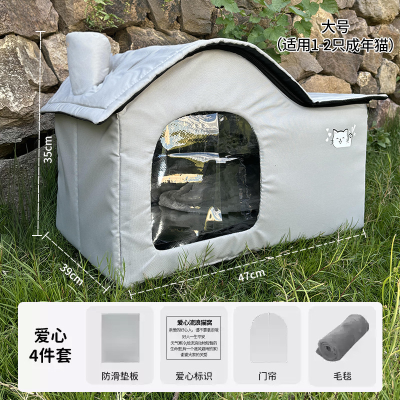 길 잃은 고양이 둥지 야외 방수 및 방비 고양이 겨울 둥지 방냉하고 따뜻한 Cattlehouse 폐쇄 야외 사육장 겨울