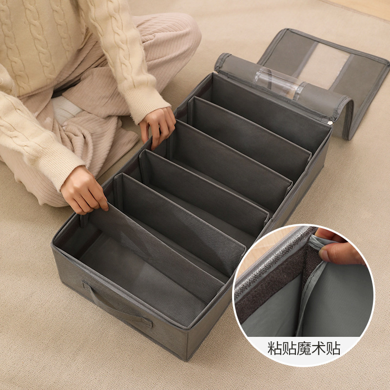 • 부직포 그레이 [린넨 6칸 신발상자]