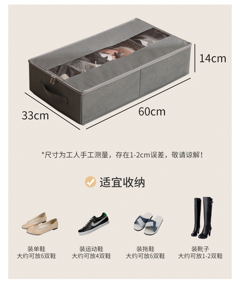 기숙사 침대 밑을 위한 투명창 신발 보관함, 방습 부직포, 6칸, 탈부착 및 접이식 보관함, 맞춤형스토어 가기