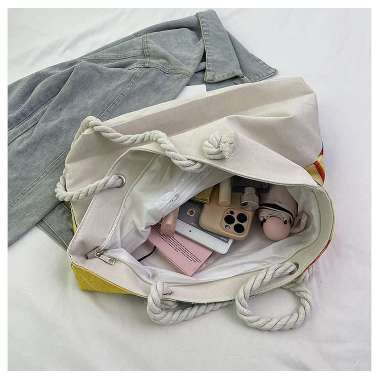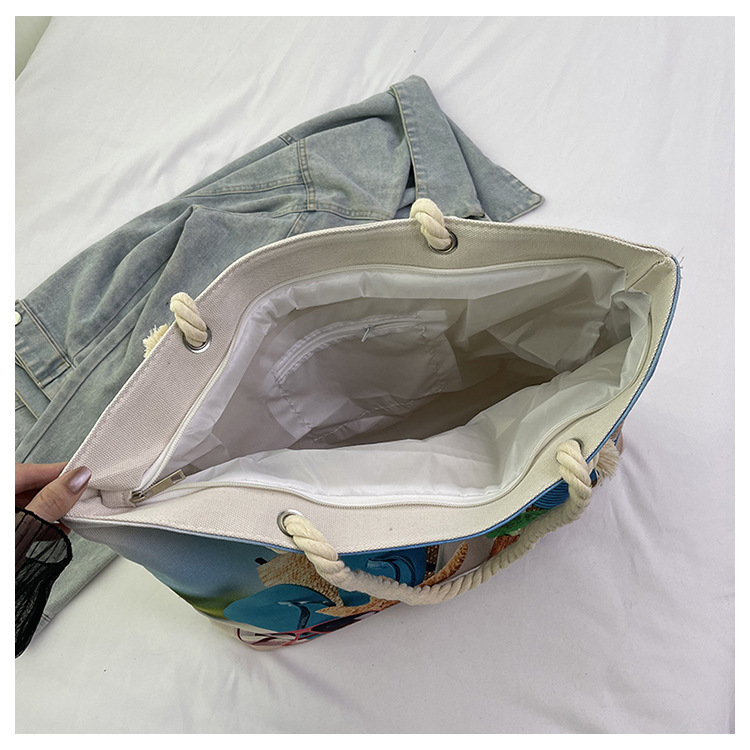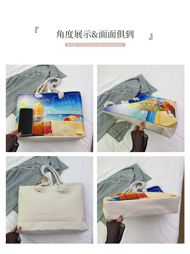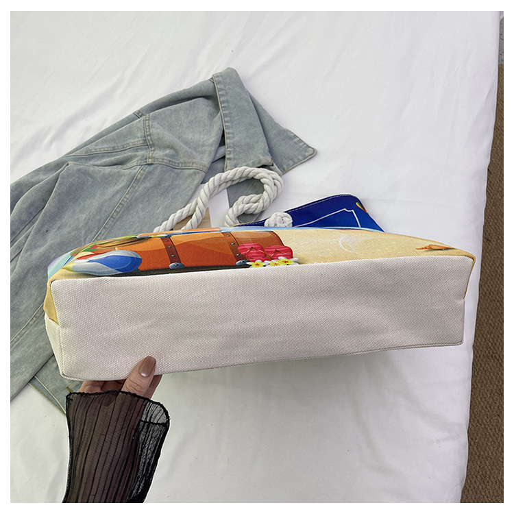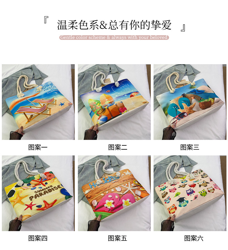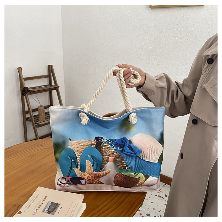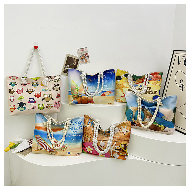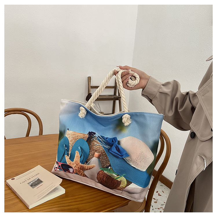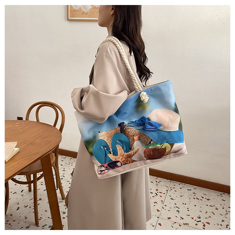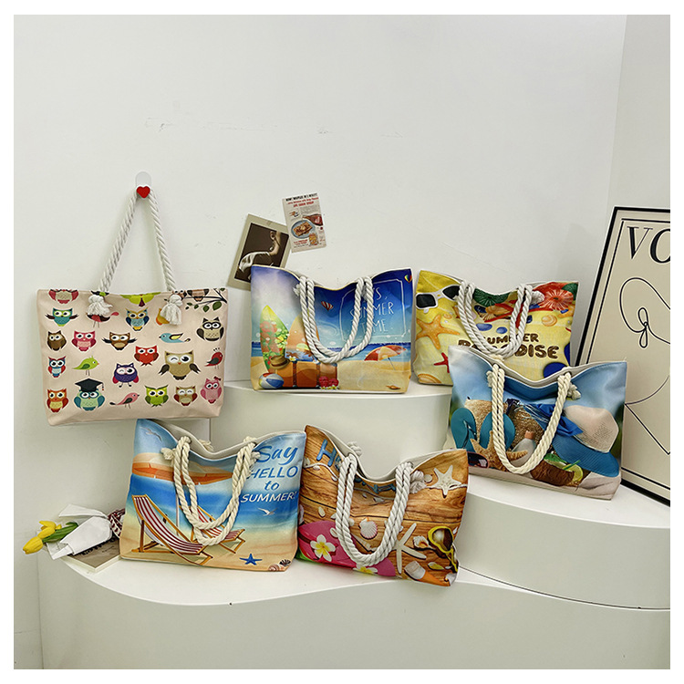 새로운 해변 해변 가방 큰 토트 어깨 여성용 가방 린넨 거친 캔버스 패션 캐주얼 핸드 백 단거리 여행 가방스토어 가기