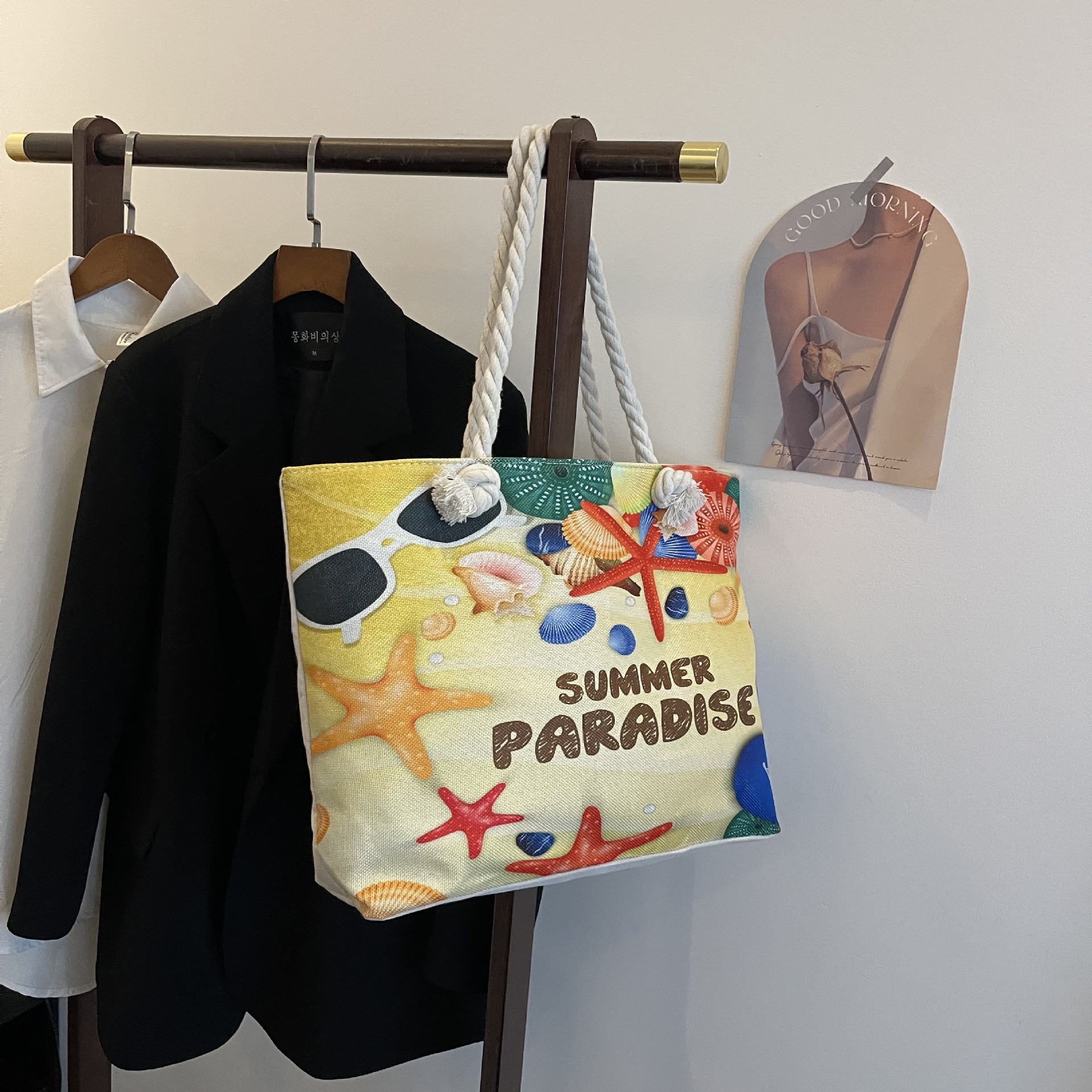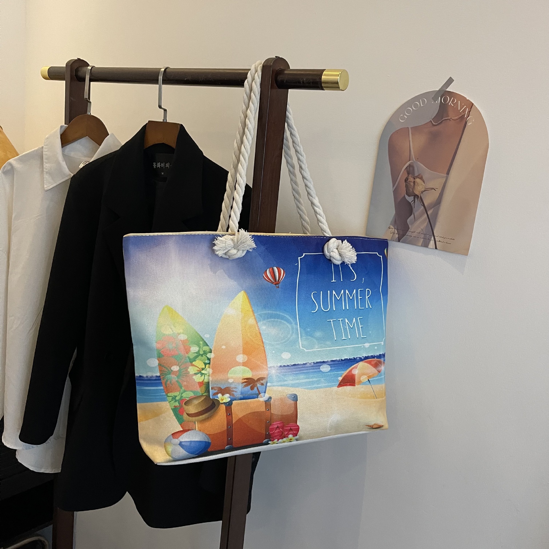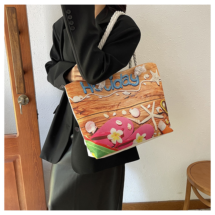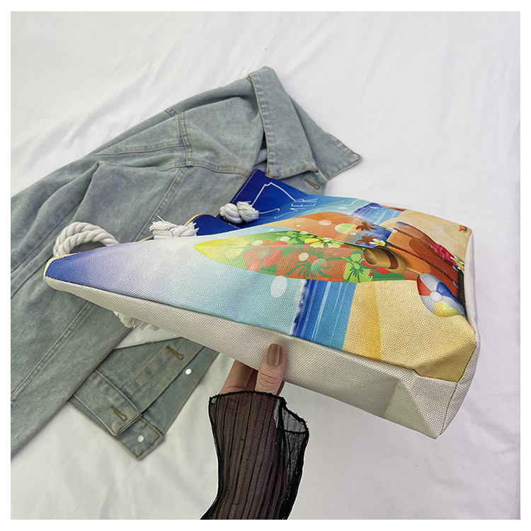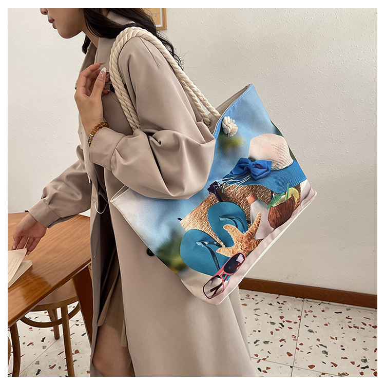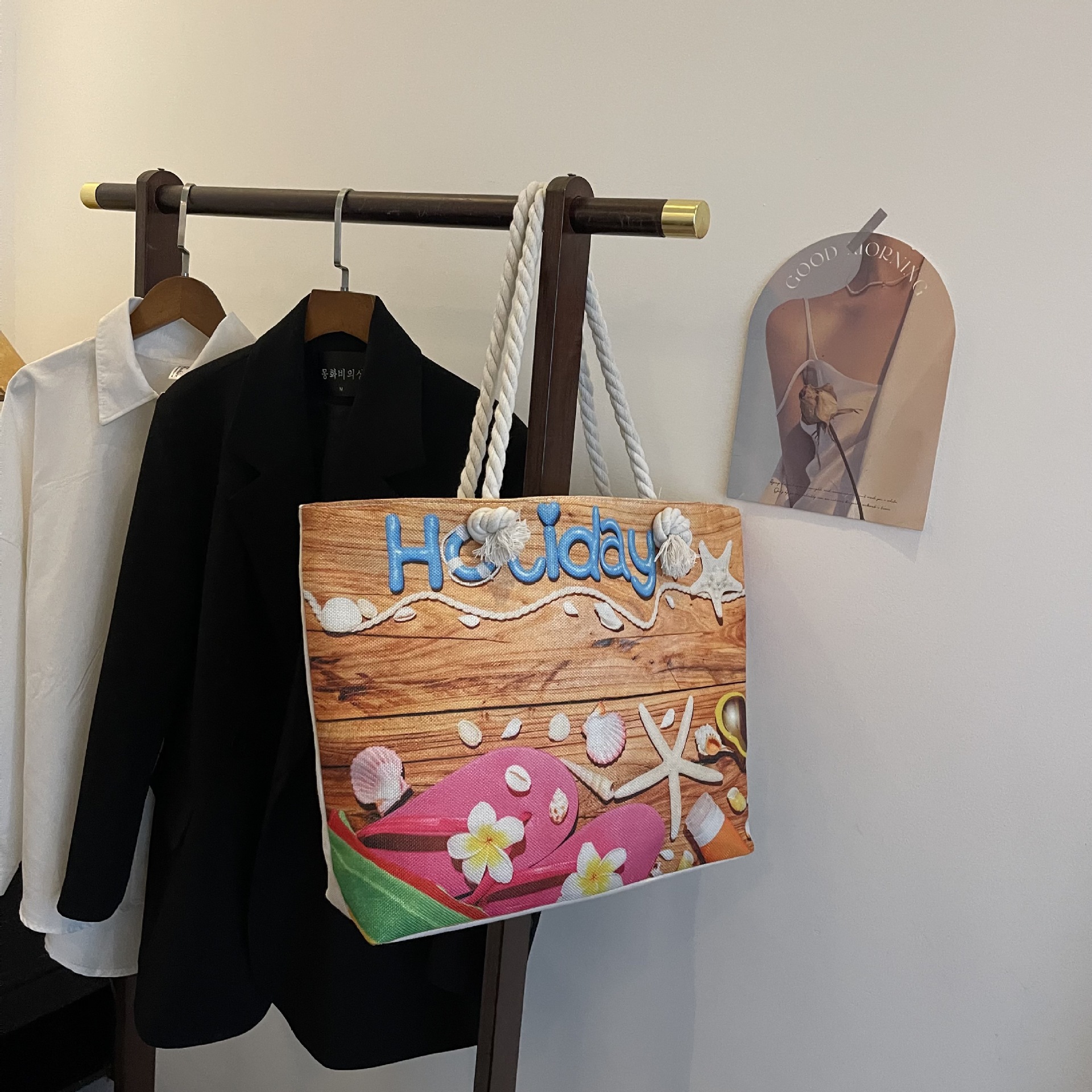 새로운 해변 해변 가방 큰 토트 어깨 여성용 가방 린넨 거친 캔버스 패션 캐주얼 핸드 백 단거리 여행 가방