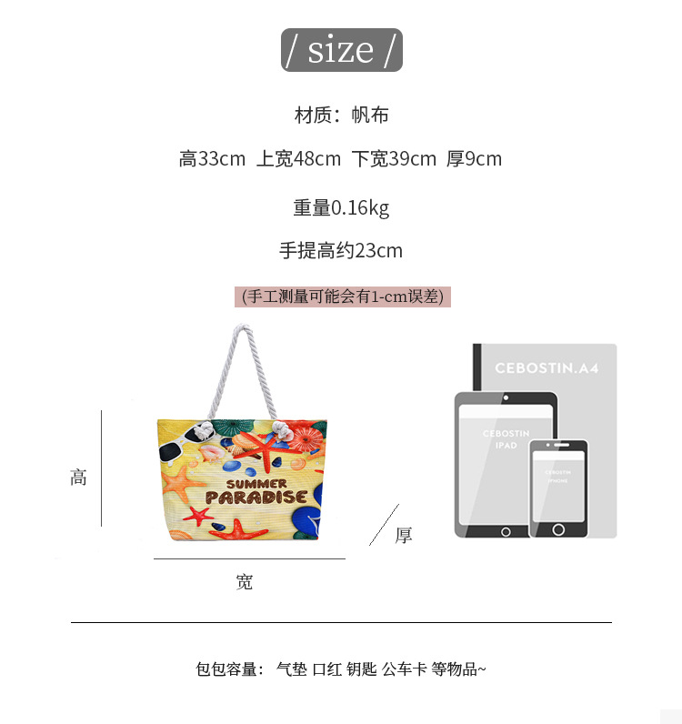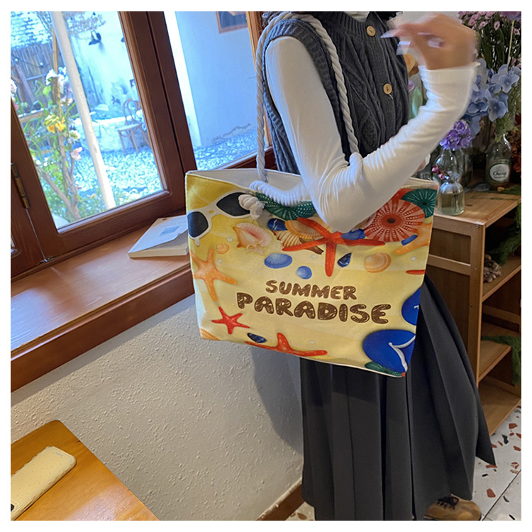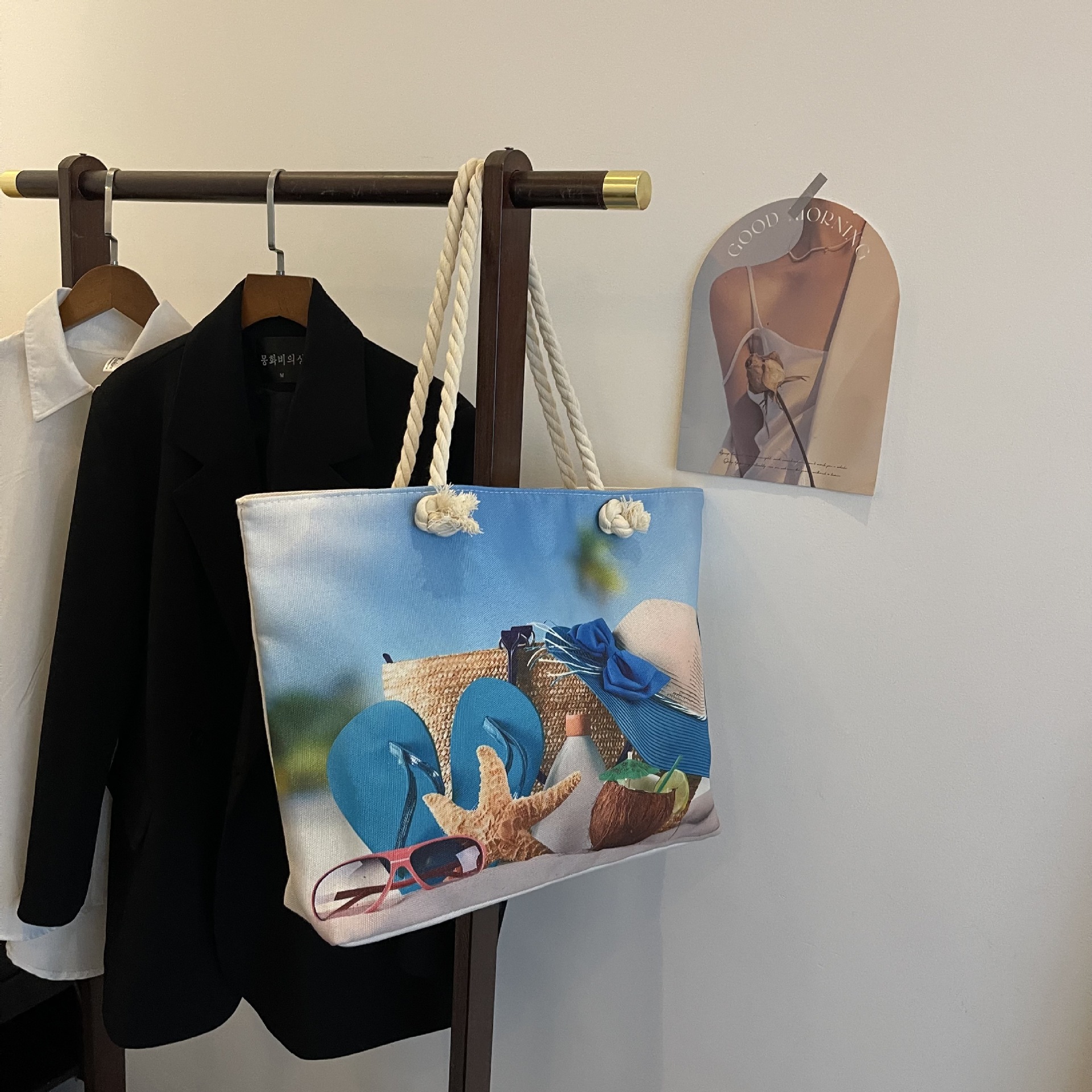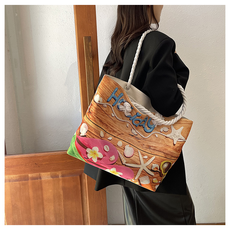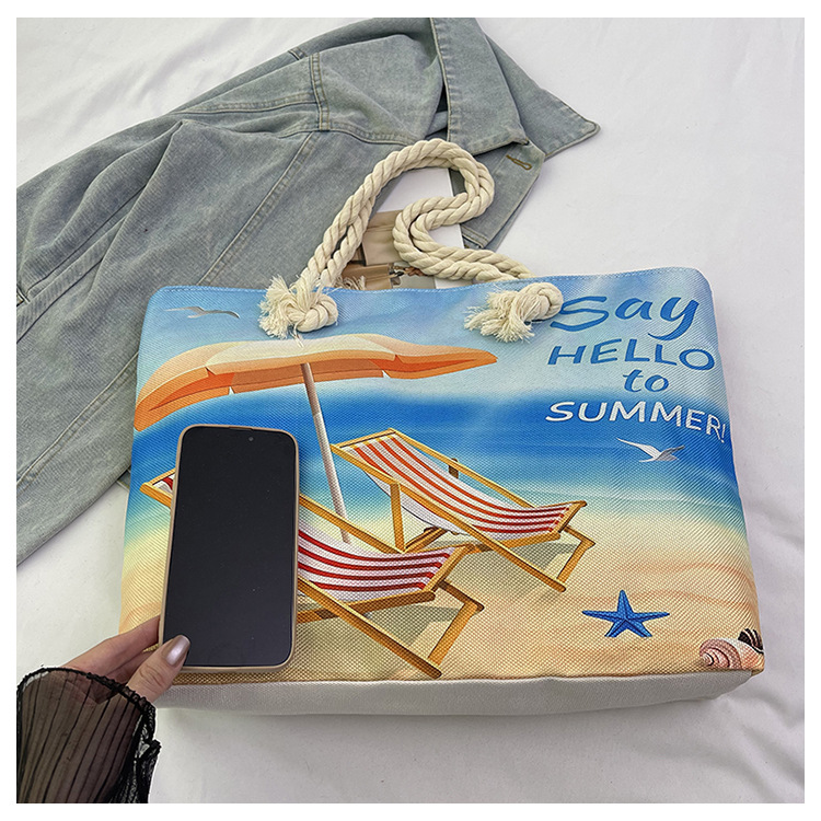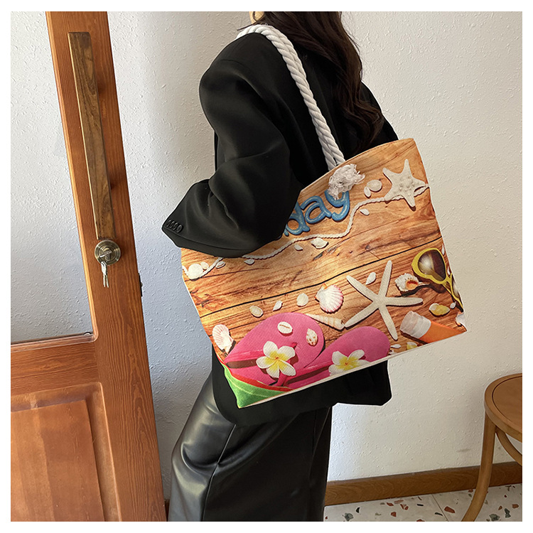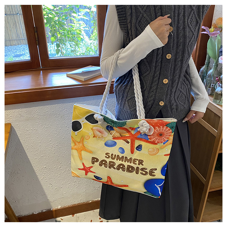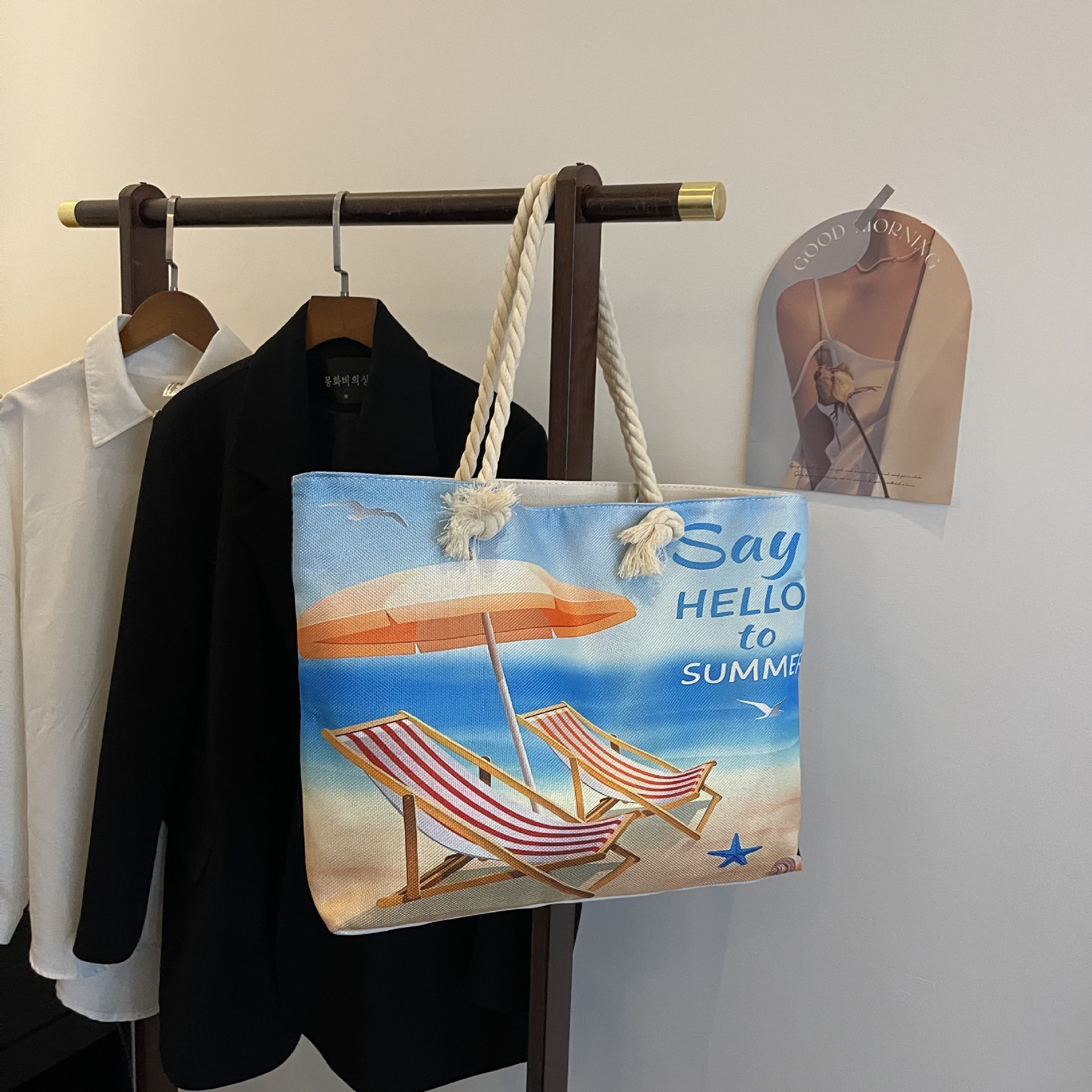 새로운 해변 해변 가방 큰 토트 어깨 여성용 가방 린넨 거친 캔버스 패션 캐주얼 핸드 백 단거리 여행 가방