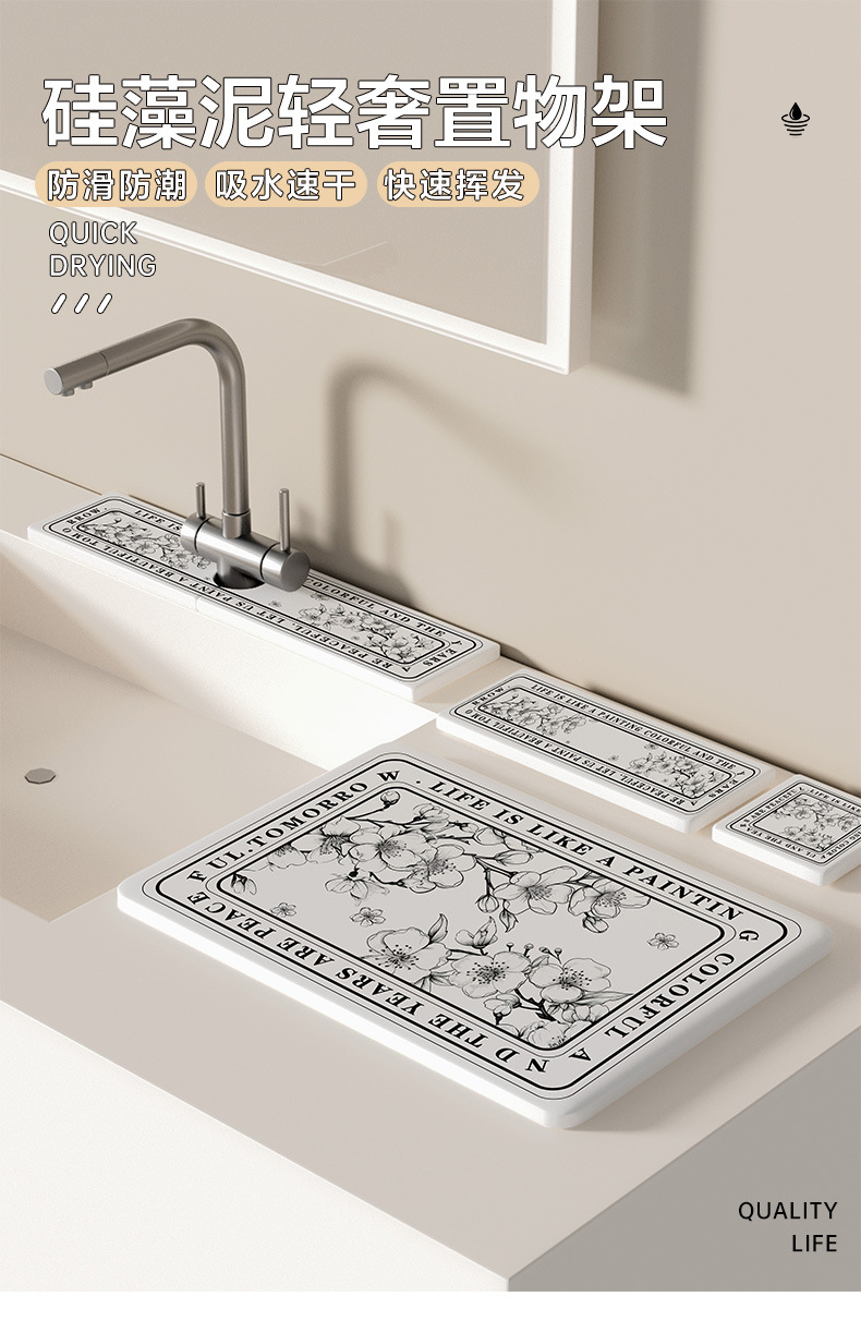 硬硅藻泥水龙头吸水垫酒店宾馆浴室洗手台台面防溅沥水垫卫生间