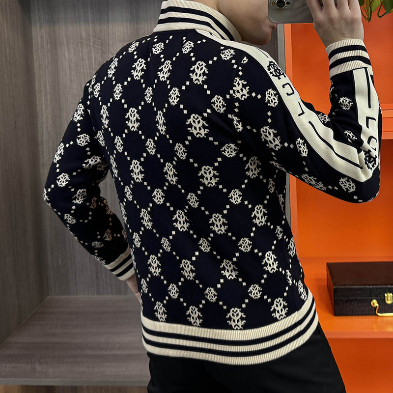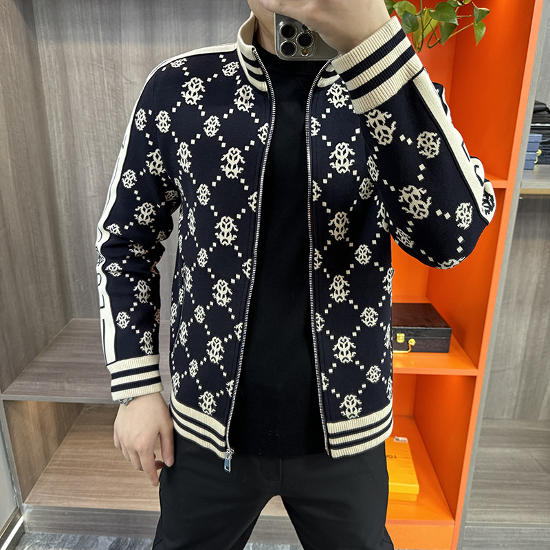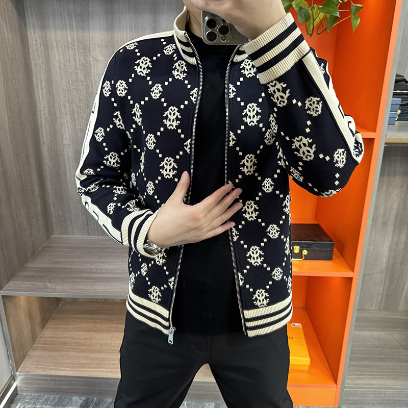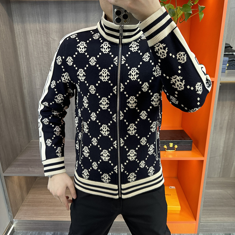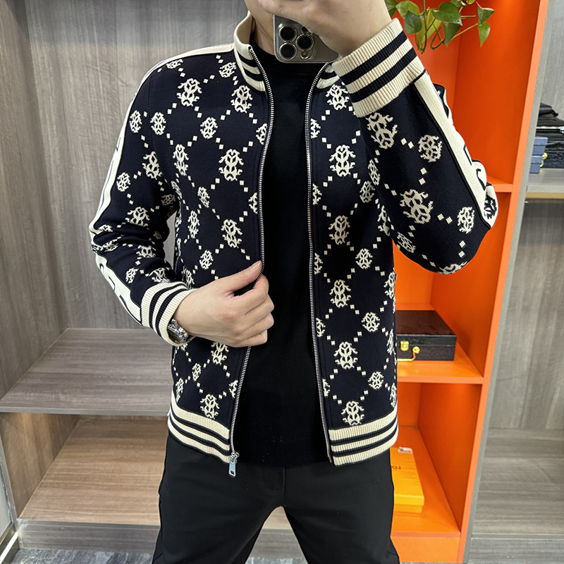 가을 새로운 남성 니트 자켓 패션 개인화 된 캐주얼 지퍼 카디건 칼라 자켓 스포츠 아우터웨어