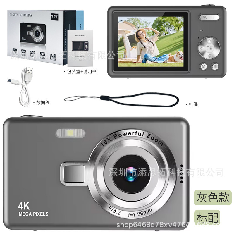 • Q12 고화질 대형 스크린 카메라 - 회색 + 64G 고속 메모리 카드 + 카드 리더기