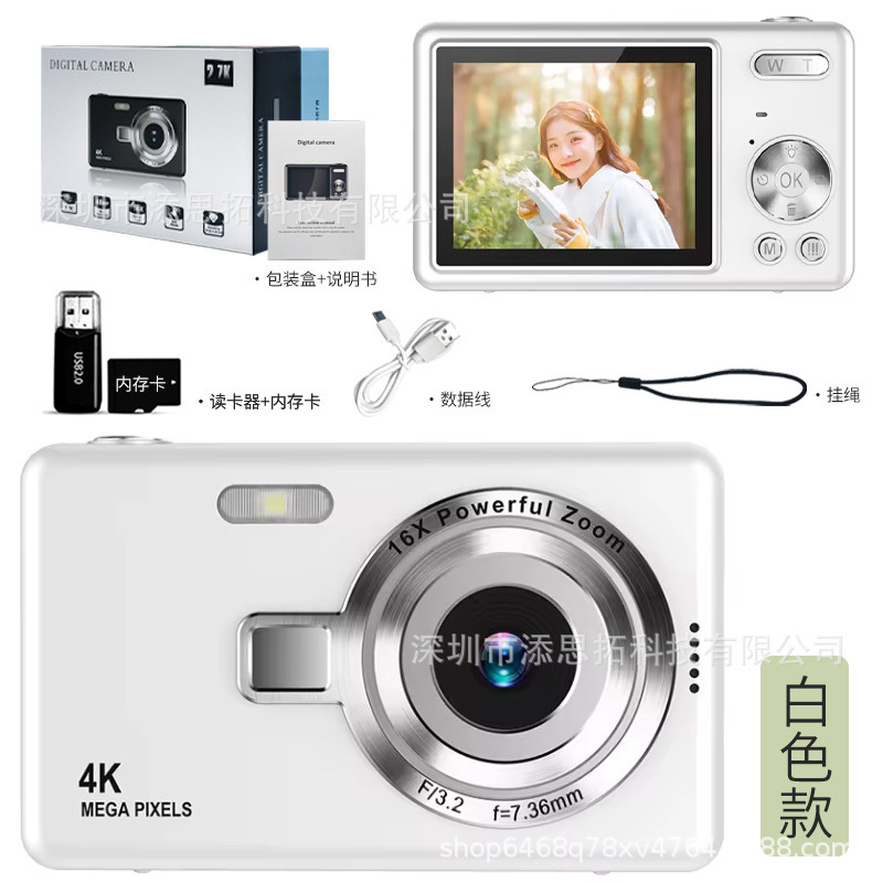 • Q12 고화질 대형 스크린 카메라 - 흰색 + 32G 고속 메모리 카드 + 카드 리더기